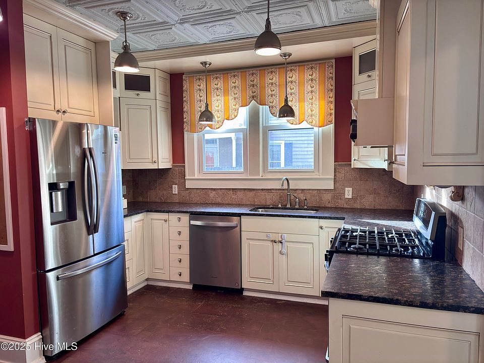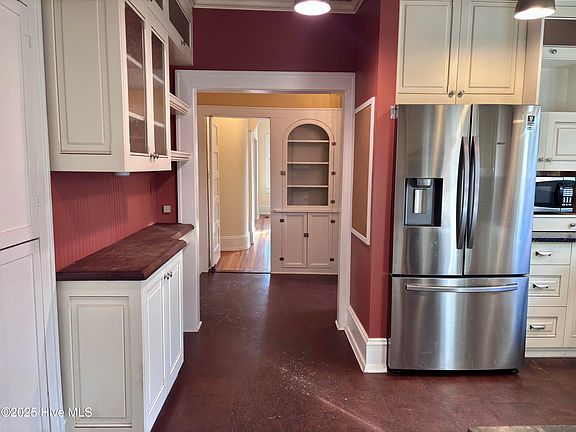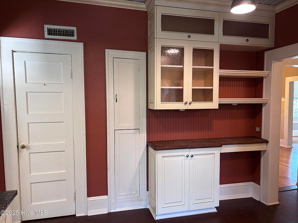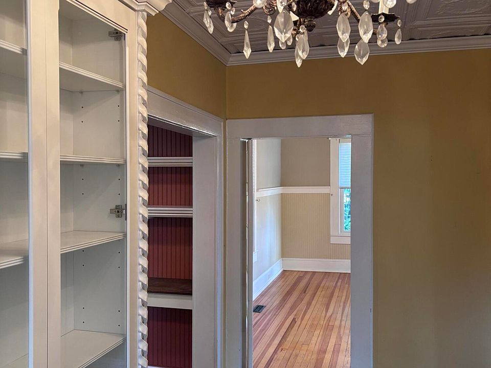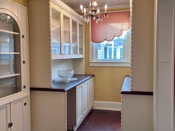 Now, let’s talk about my favorite part: the kitchen and the butler’s pantry. Both of these rooms have beautiful pressed tin ceilings. It is such a rare and lovely detail that reminds you of the craftsmanship from 1904. The butler’s pantry is full of custom cabinets and countertops, making it the perfect place to show off your favorite dishes and glassware. It even has a swinging door, which is a classic touch I absolutely love.