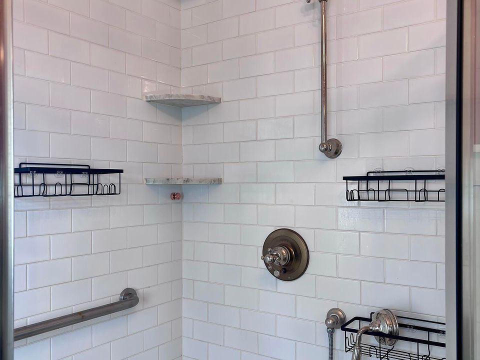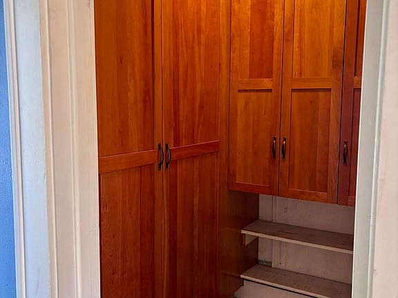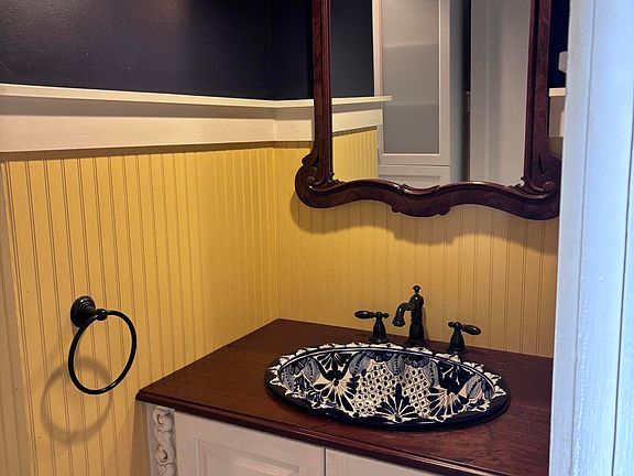 Upstairs, you will find three more bedrooms and a bathroom that is absolutely gorgeous. It has a walk-in glass shower and a soaking tub that looks like the perfect place to relax after a long day. The floors throughout the home are a mix of lovely wood, tile, and even cork flooring. Everywhere you look, there is something interesting to see, from the beadboard walls to the custom built-in shelves.