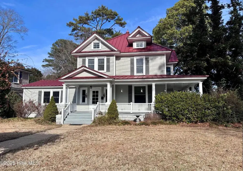 The very first thing you will notice is the porch. To a lover of old houses, a wrap-around porch is the ultimate prize. This one goes across the front and down the side of the home. It is perfectly designed for a row of rocking chairs or a porch swing. It’s the kind of place where you can sit and watch the seasons change while sipping on some iced tea. It gives the house that classic, inviting look that makes a historic home feel like part of the community.