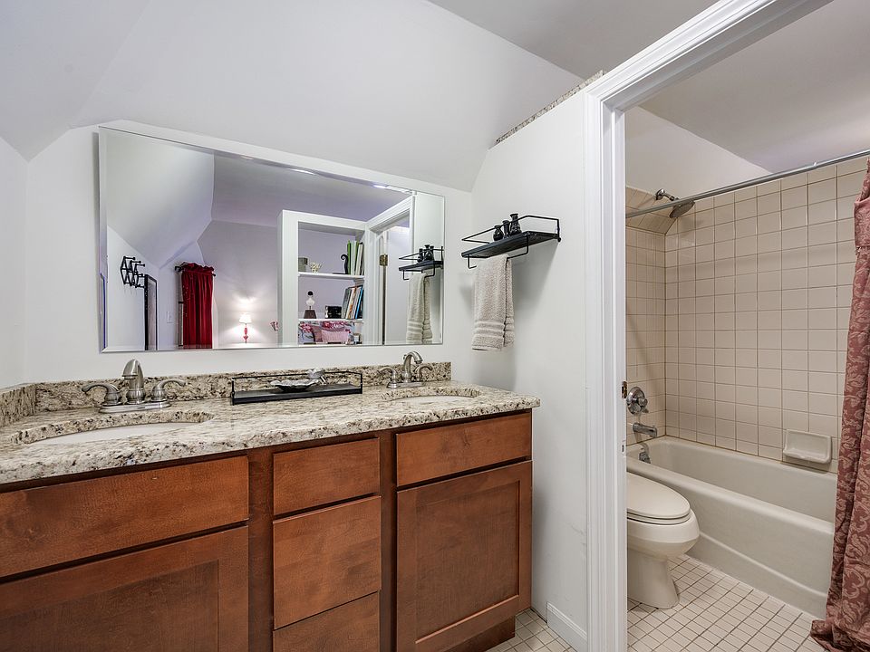 The lower level of the home has also been thoughtfully renovated, providing additional living space that is both stylish and practical. Acid-stained cement floors give the area a modern, loft-like feel, while a full bathroom and a bright, cheerful laundry room add convenience. This level could function as a recreation space, home gym, media room, or even additional guest quarters, making it a valuable extension of the main living areas above. In the world of real estate, having a fully usable and updated lower level is a major advantage, adding significant value and versatility to the property.