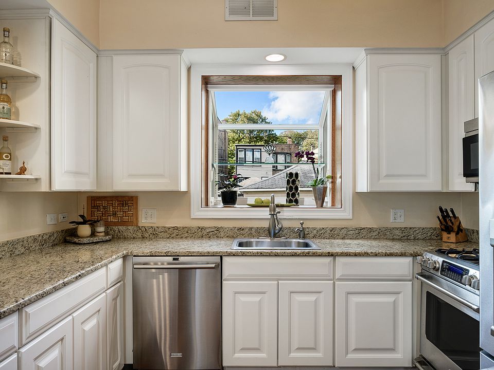 At the heart of the home lies a thoughtfully updated gourmet kitchen. Featuring rich teak floors that run throughout much of the property, the kitchen is both stylish and functional. Modern appliances and ample cabinetry make it a joy for both casual cooks and passionate chefs, while thoughtful design ensures that the kitchen connects seamlessly with the rest of the living space. Perhaps most importantly, the kitchen overlooks the beautifully landscaped backyard, offering peaceful views while you prepare meals or enjoy a morning coffee. In a city as dynamic as Chicago, having this kind of connection to nature is a true luxury.