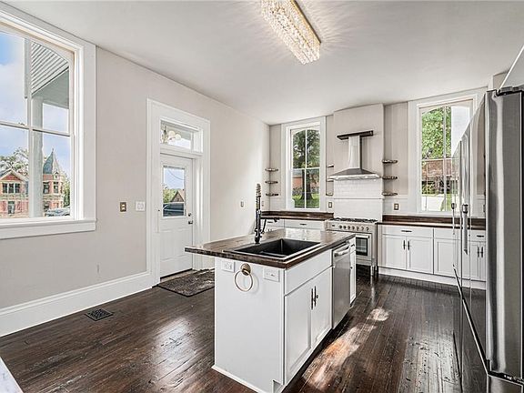 - Key Features: Eight fireplaces, original refinished hardwoods, restored windows, balcony, stainless steel appliances, and laundry on three levels.