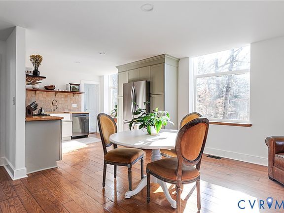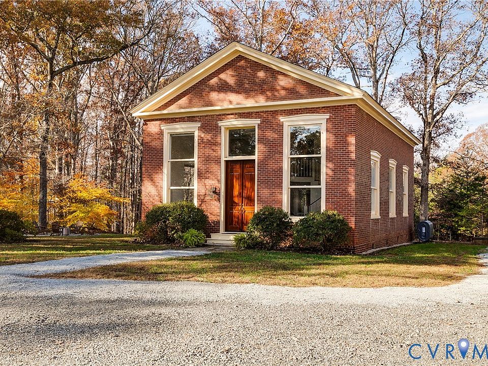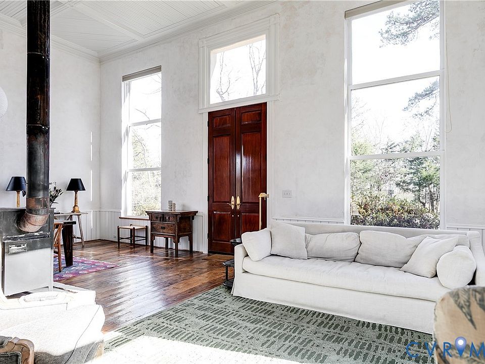 Welcome to 4791 Saint Paul’s Church Road, a truly one-of-a-kind brick and slate Greek Revival home rich in history and architectural character. Built in 1839, this remarkable property began as an Episcopal church and later served as a hospital during the Civil War. After being abandoned in the 1950s, it was thoughtfully converted into a single-family residence in the 1970s. Set on 3 private acres, the home features soaring 16-foot ceilings, an abundance of original architectural details, and reclaimed hardwood floors sourced from Richmond factories. The current owners have poured care and intention into every renovation, honoring the home’s past while enhancing its livability. As you arrive, the newly reconfigured regraded driveway and new stunning 12+ foot mahogany double doors welcome you. Entering the home into the great room, this light-filled space showcases towering ceilings, expansive windows with newly installed blinds, limewashed walls, custom built-ins, and ample room for both living and dining. An open staircase enhances the airy, open feel. The fully renovated kitchen features new cabinetry, stainless steel appliances, and butcher block countertops, and opens to a cozy eat-in area with space for additional seating—perfect for everyday living and entertaining. The first floor also offers a bedroom with built-ins, a beautifully renovated full bathroom with black tile and updated finishes, and a convenient laundry/mudroom with direct access to the deck. Upstairs, the open staircase leads to a charming loft or office space. The spacious primary bedroom features exposed beams, creating a warm and inviting retreat. A third bedroom and another renovated full bathroom complete the second level. The architectural details throughout this home are truly bar none. Outside, enjoy the expansive new deck with a custom metal roof that connects seamlessly to the mudroom. The rebuilt shed has been transformed into an art studio, and the 3-acre lot provides privacy, beauty, and high-speed internet!