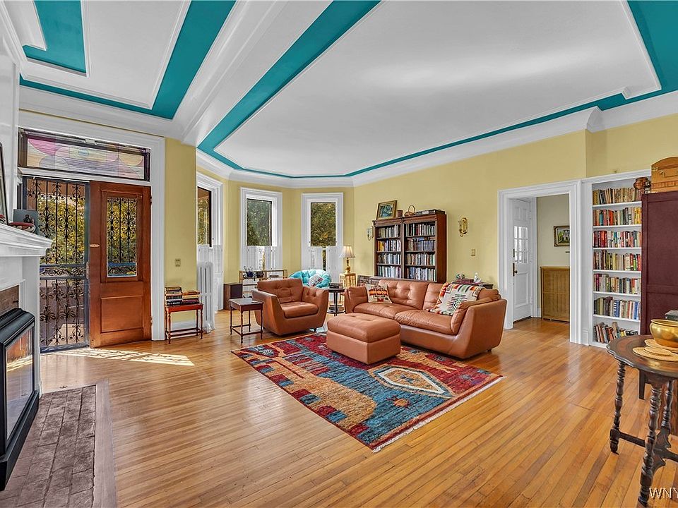 If you love houses with deep roots and a lot of character, this 1870 Second Empire Victorian is going to steal your heart. It has been standing proud for over 150 years, and you can feel that history the moment you walk inside. The ceilings are a massive 11 feet tall, and the giant floor-to-ceiling windows let in so much sunshine it makes the whole house glow. One of my favorite spots is the living room. It has a cozy gas fireplace and French doors that lead out to a covered porch. It is the perfect place to sit with your morning coffee and watch the world go by in one of Buffalo’s most beautiful neighborhoods.