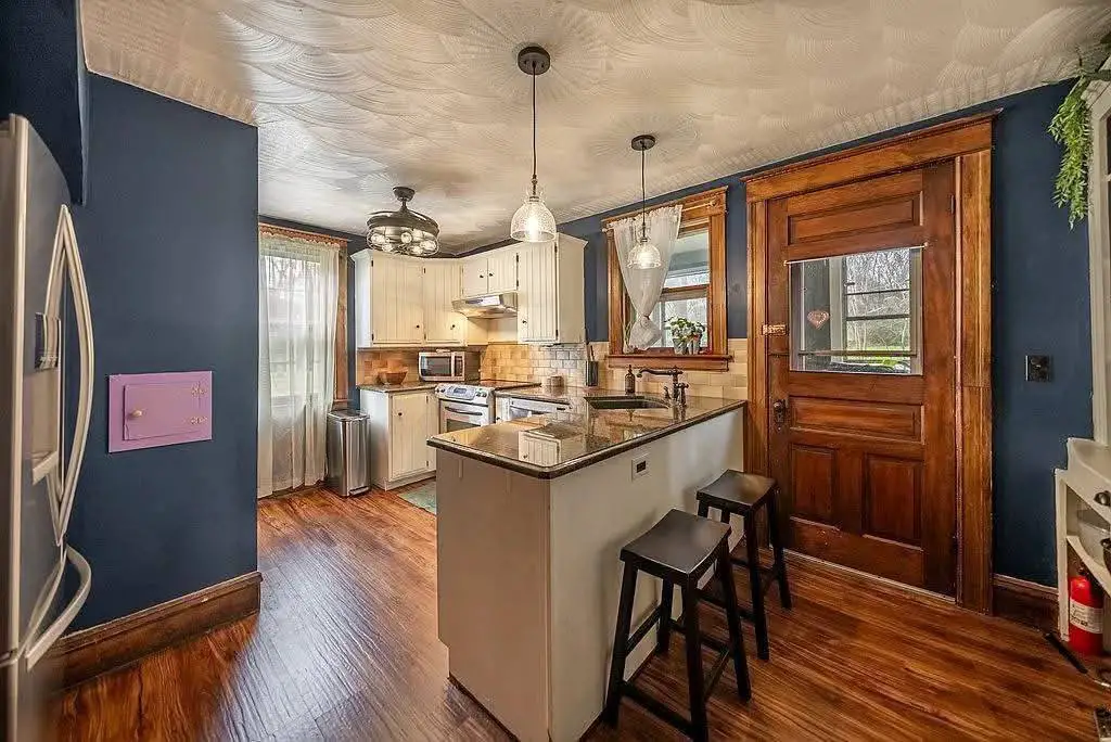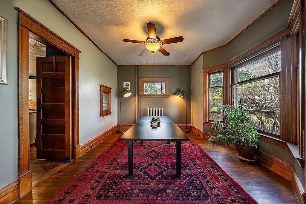 The dining room is ideal for anyone who enjoys hosting friends or family. Whether it’s a weekly dinner, a holiday gathering, or a casual weekend brunch, the atmosphere enhances any meal. The high ceilings, natural light, and hardwood floors create an environment that feels both elegant and unfussy. This is not a home trying to impress through sleek minimalism; it impresses by being exactly what it is—a lovingly maintained Victorian with history, character, and soul.