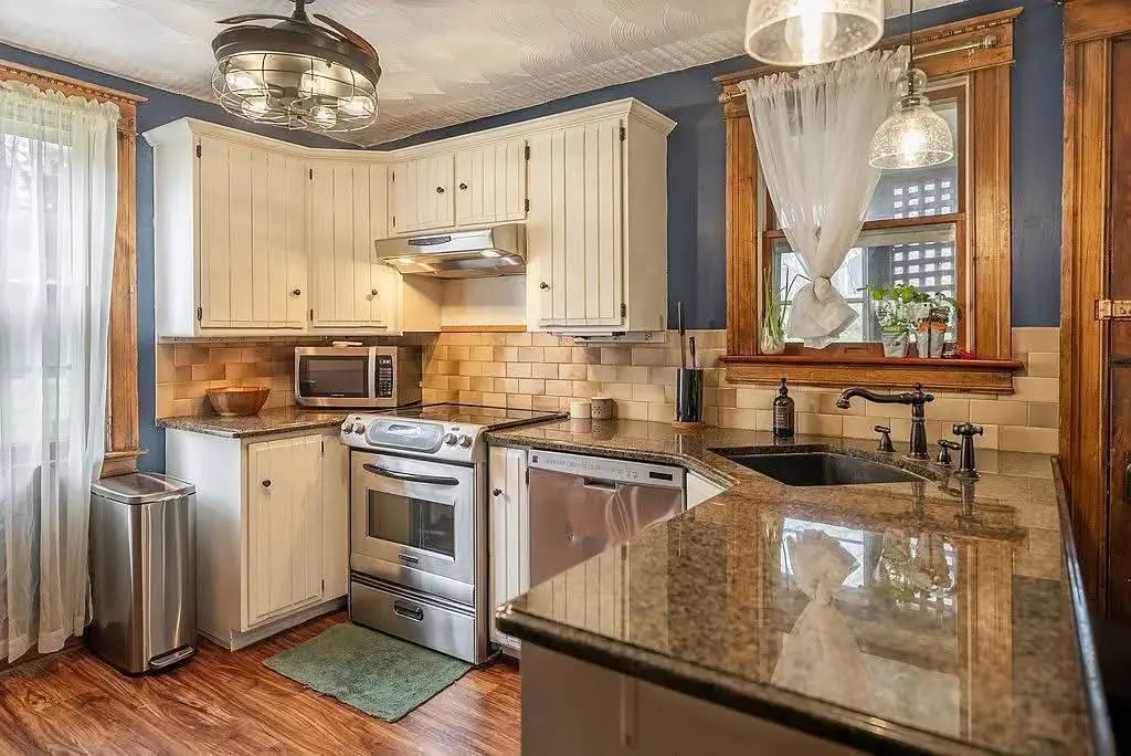 The kitchen sits toward the back of the home and leads out to a private little patio that acts as a charming bonus space. This area is perfect for morning coffee or quiet evenings enjoying fresh air among blooming flowers and bushes that surround the yard. The outdoor environment is intimate without feeling cramped, and because the landscaping is already established, the next owner can enjoy mature plantings that return year after year. Many homes for sale advertise outdoor potential but offer little more than grass. Here, the landscaping plays an important role in the overall feel of the property. It supports the Victorian character and creates an appealing backdrop to daily life.