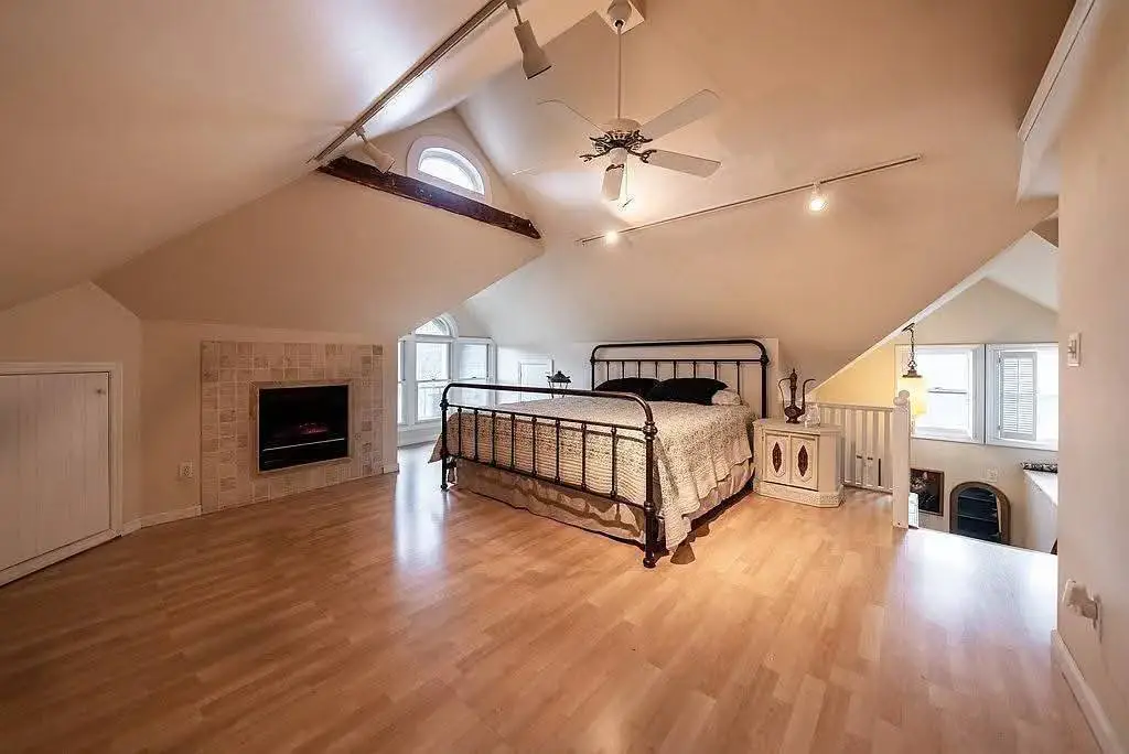 The third level of the house holds the primary bedroom suite, which adds another level of versatility and appeal. This private retreat is complemented by its own full bathroom and an additional sitting area or dressing room. The extra space creates a sense of luxury without being ostentatious. It also allows the homeowner to personalize the suite to their liking—an office nook, a reading space, a dressing area, or even a meditative corner. The layout feels intentional and functional, giving the top floor a cozy separation from the rest of the home. In real estate, primary suites with distinct extras like dressing rooms or sitting areas often become focal points for buyers, especially those who appreciate the blend of charm and practical living. This upper-floor haven strikes that perfect balance.