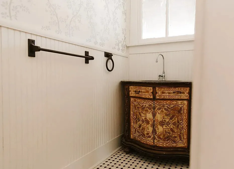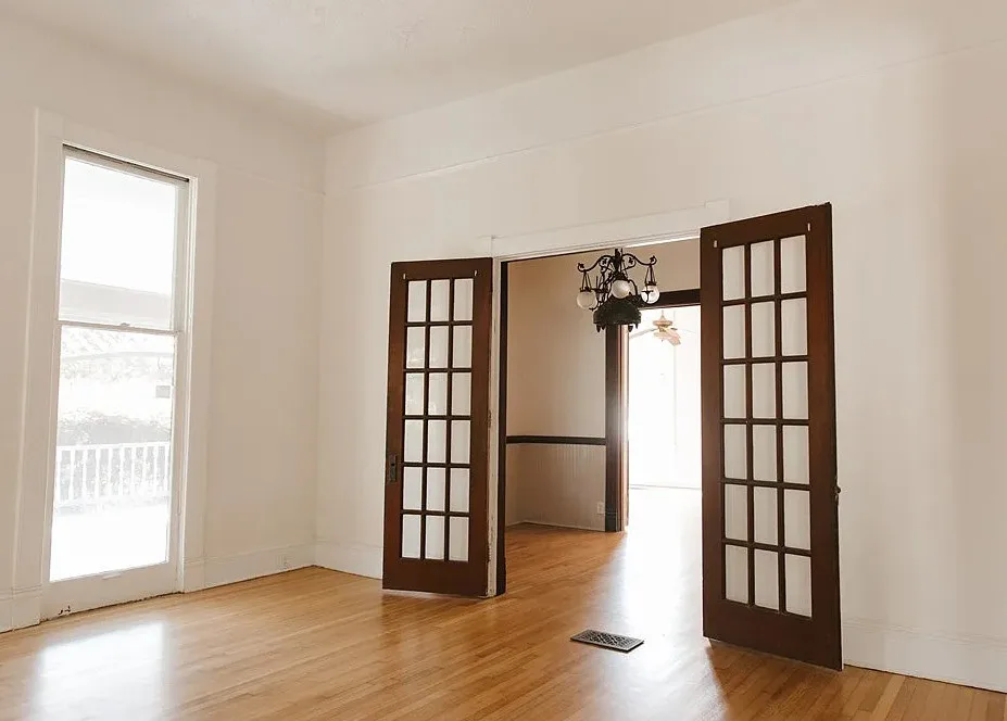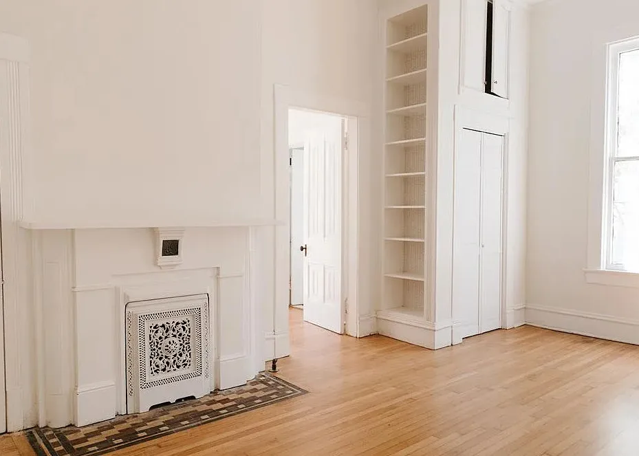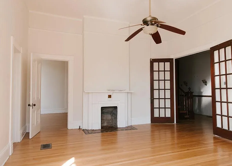 From the porch, you’ll step through beautiful French doors into a home that exudes character. The original hardwood floors, which have been lovingly refinished, set the tone for the craftsmanship you’ll see throughout the house. Tall baseboards, crown molding, vintage light fixtures, and built-in bookshelves are among the many features that speak to the property’s historic charm.
