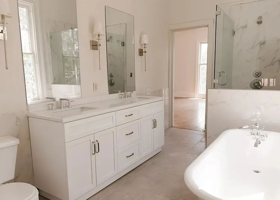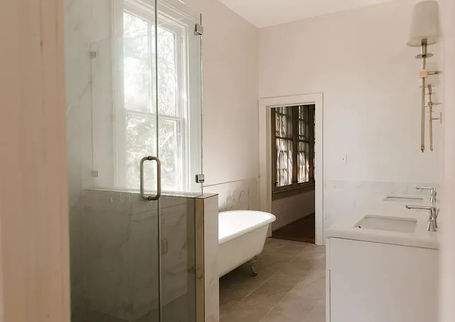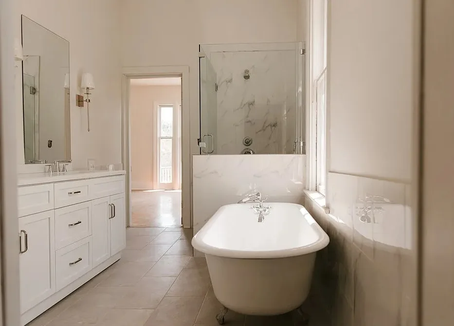 Many of the bedrooms also feature original fireplaces, adding charm and warmth. The fireplaces serve as both functional features and beautiful reminders of the home’s heritage. The bathrooms have been fully updated with modern finishes, including large soaking tubs, marble showers, double vanities, and elegant tile floors—creating spa-like spaces that perfectly balance old-world character with today’s comforts.