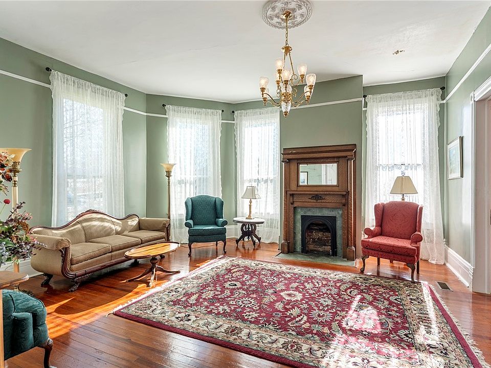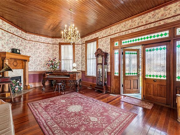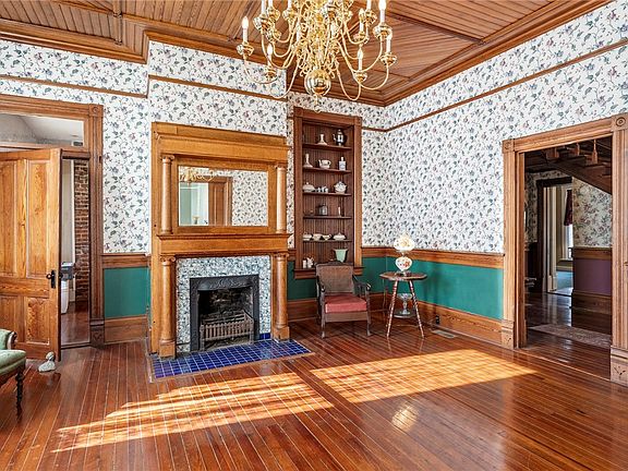 - Living Spaces: Formal living room, dining room, parlor, and a kitchen with a large pantry