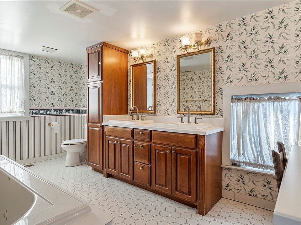 - Yard: 1.2-acre level city lot with partial wood fencing and mature landscaping
