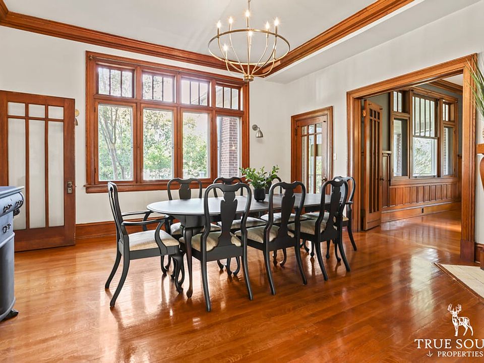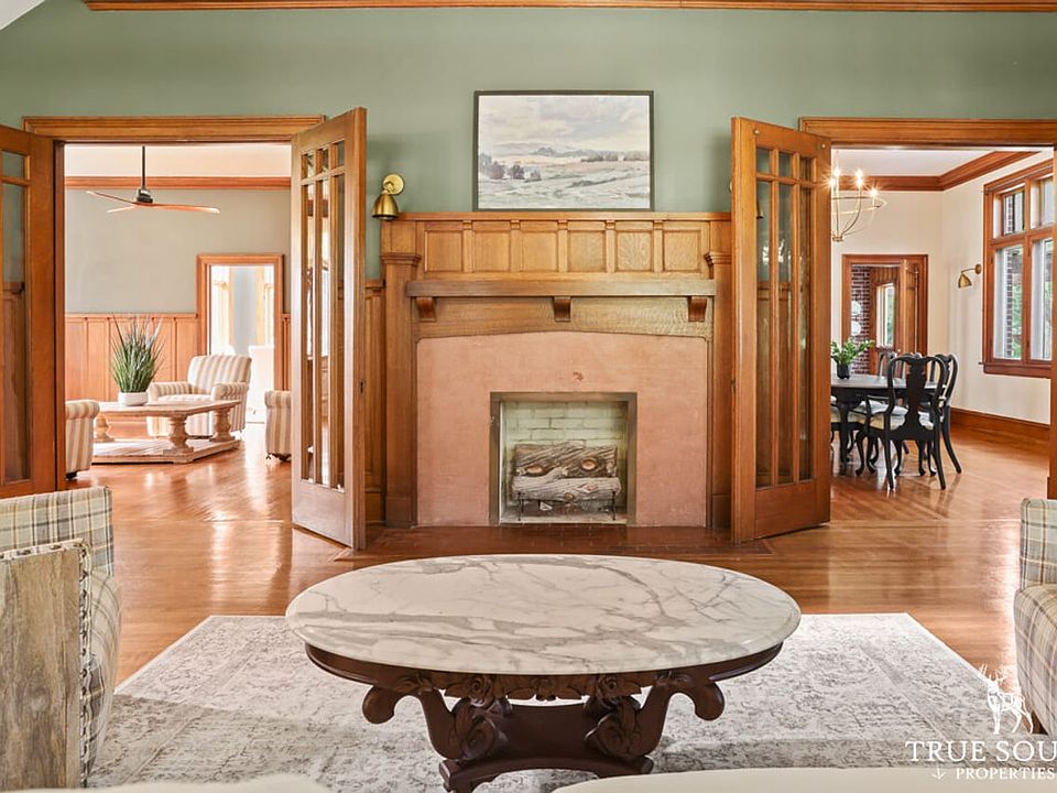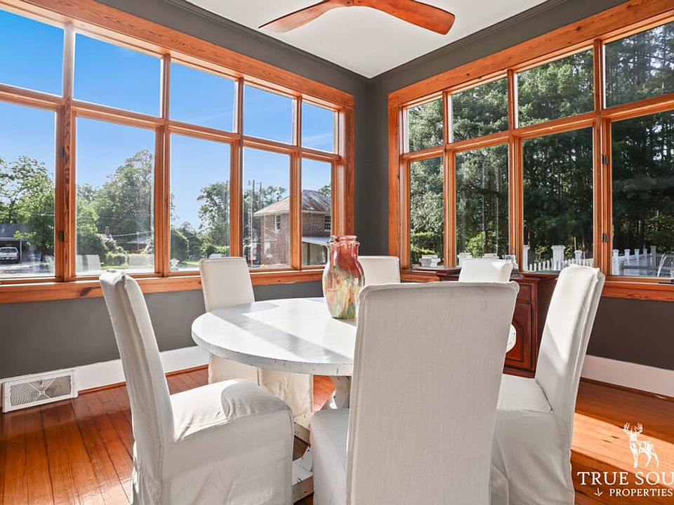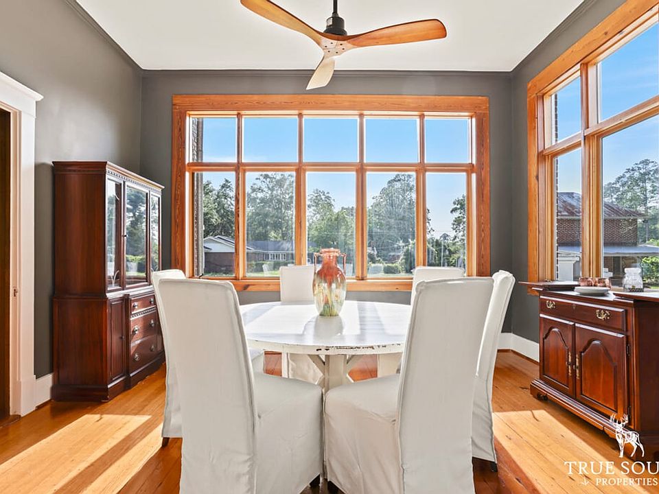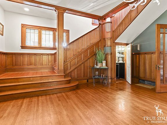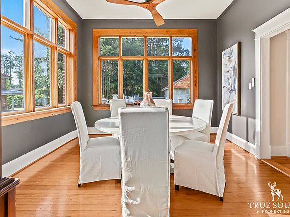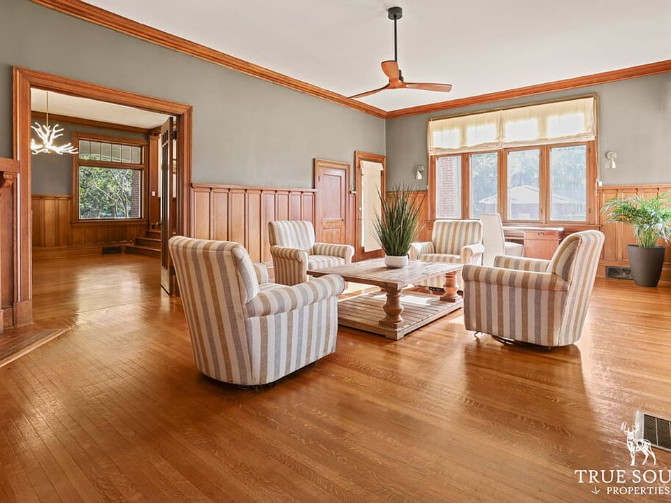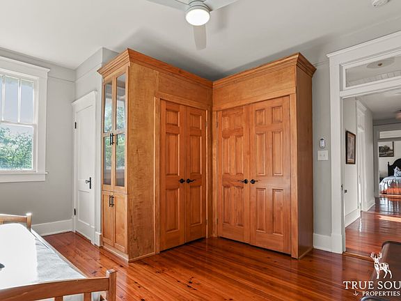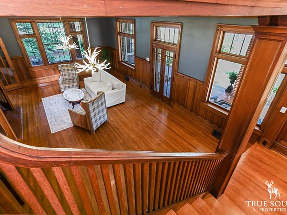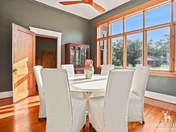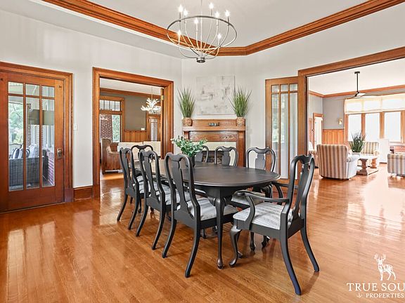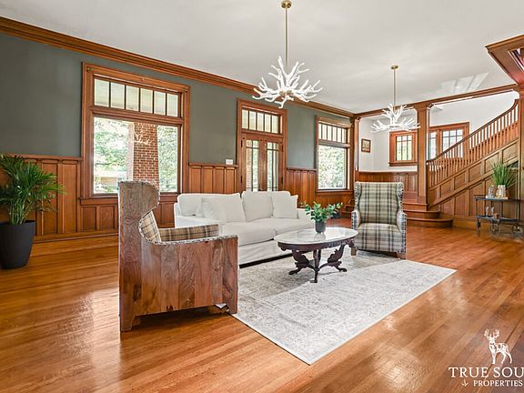 Nestled in the heart of Estill on 1.8 acres, this stately 5-bedroom, 3.5-bathroom residence spans 3,869 sq ft and captivates from the moment you arrive. Step inside to be greeted by breathtaking tiger oak wood trim that wraps every doorway, window, and staircase with warmth and grandeur. The original hardwood floors, high ceilings, and paneled wainscoting speak to the craftsmanship of a bygone era, while tasteful upgrades provide the comfort of today.