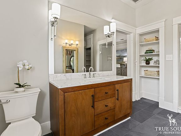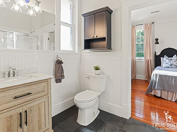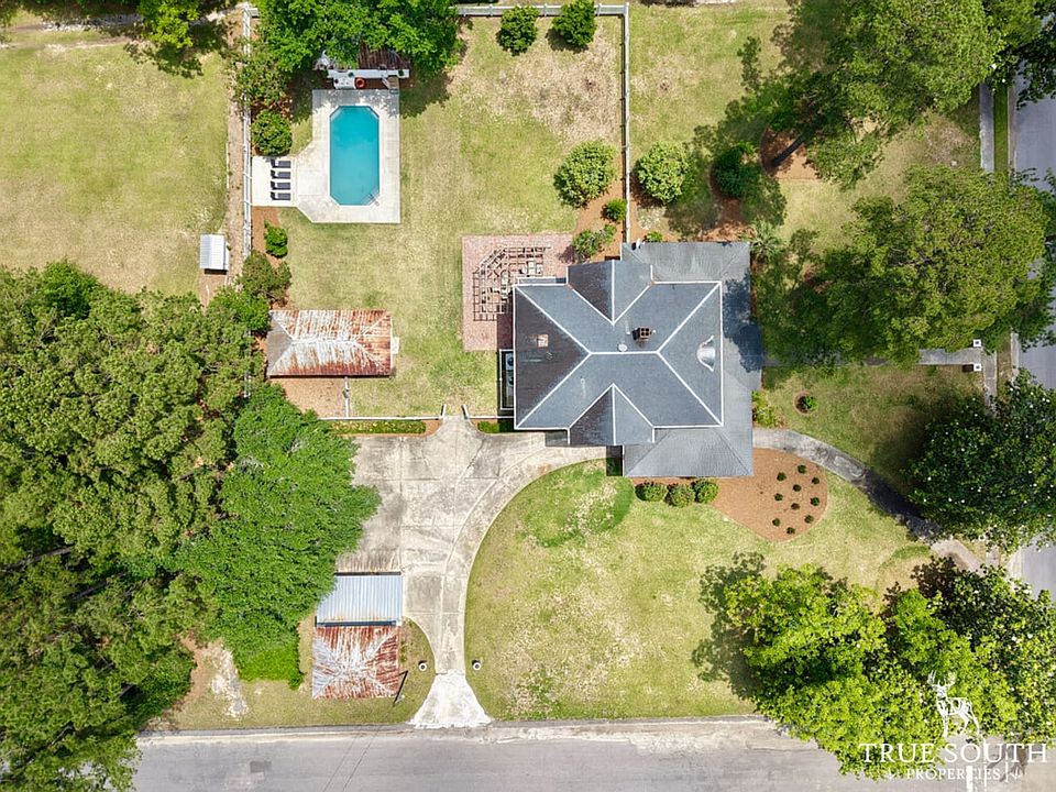 Step outside to your own private oasis: a beautiful in-ground pool accompanied by a charming pool house complete with bedroom and bathroom facilities, making it ideal for hosting gatherings or simply relaxing in the Southern sunshine. Set on a generous nearly two acre lot with mature trees and lush landscaping, the property also boasts a second large backyard area or secondary lot with potential for a garden, outdoor entertaining space, boat or large equipment storage, or even a future second house.