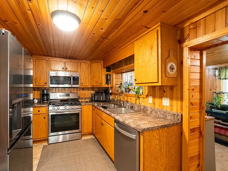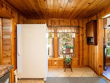 Inside, the cottage beautifully maintains its original 1930s character while incorporating essential modern updates. Original wood floors and charming bead-board ceilings provide a welcoming, rustic atmosphere. The heart of the home, the refreshed kitchen, features stainless steel appliances and ample counter space, creating a bright and highly functional environment perfect for both everyday cooking and entertaining guests. The single, updated bathroom continues the home’s thoughtful blend of comfort and style.