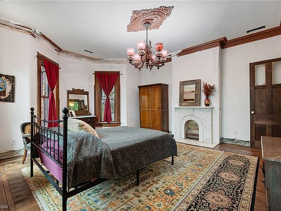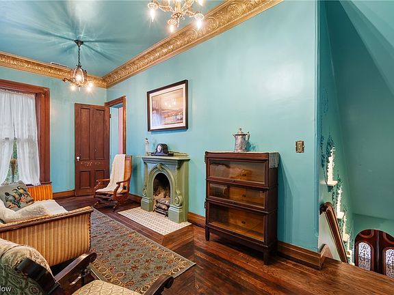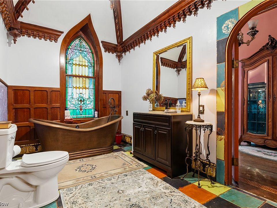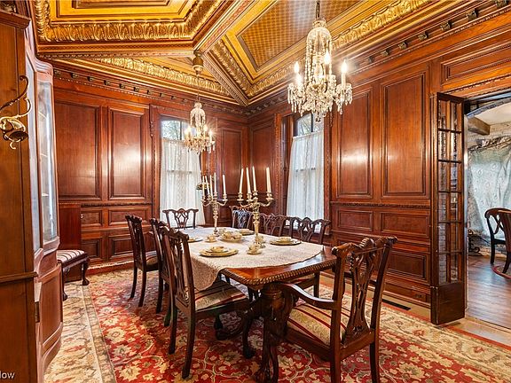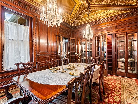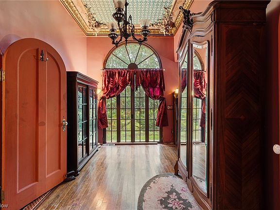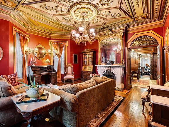 This Italianate manor captures the eye with rounded windows, six fireplaces with marble mantels, and ornate ceilings that soar overhead. Hand-painted floors and decorative borders add character to many rooms. The home’s scale and artistry make it one of Ohio’s architectural treasures.