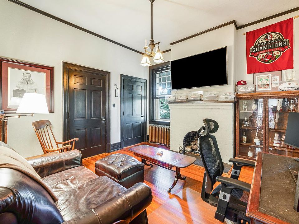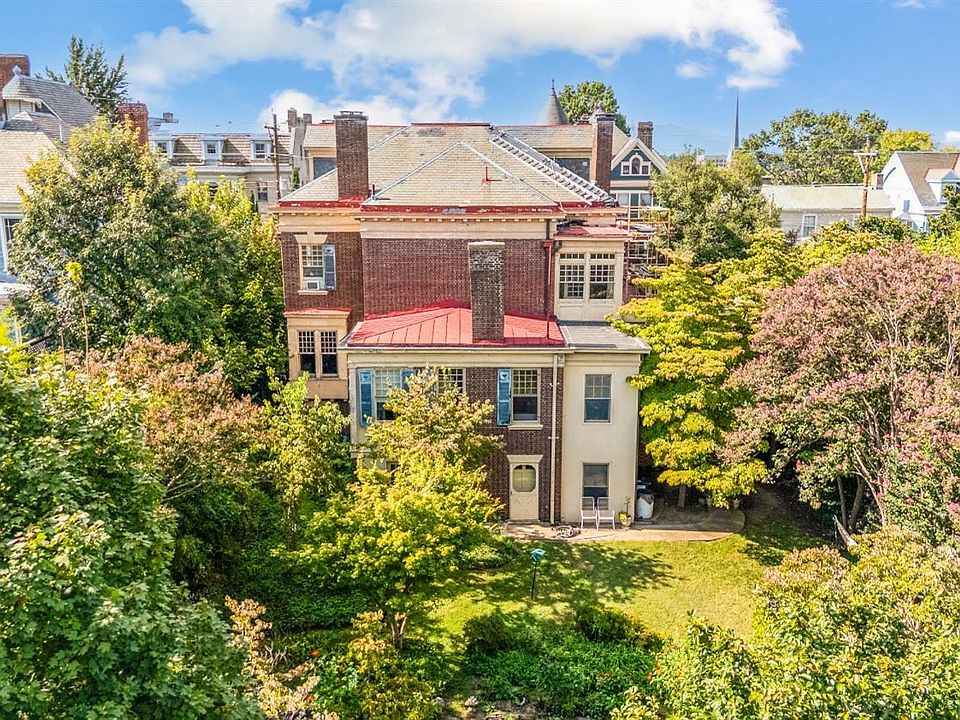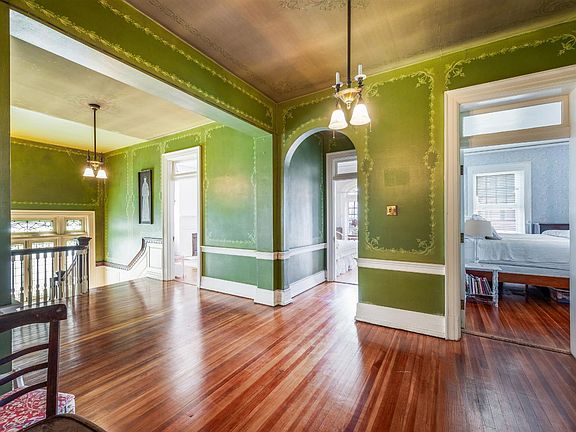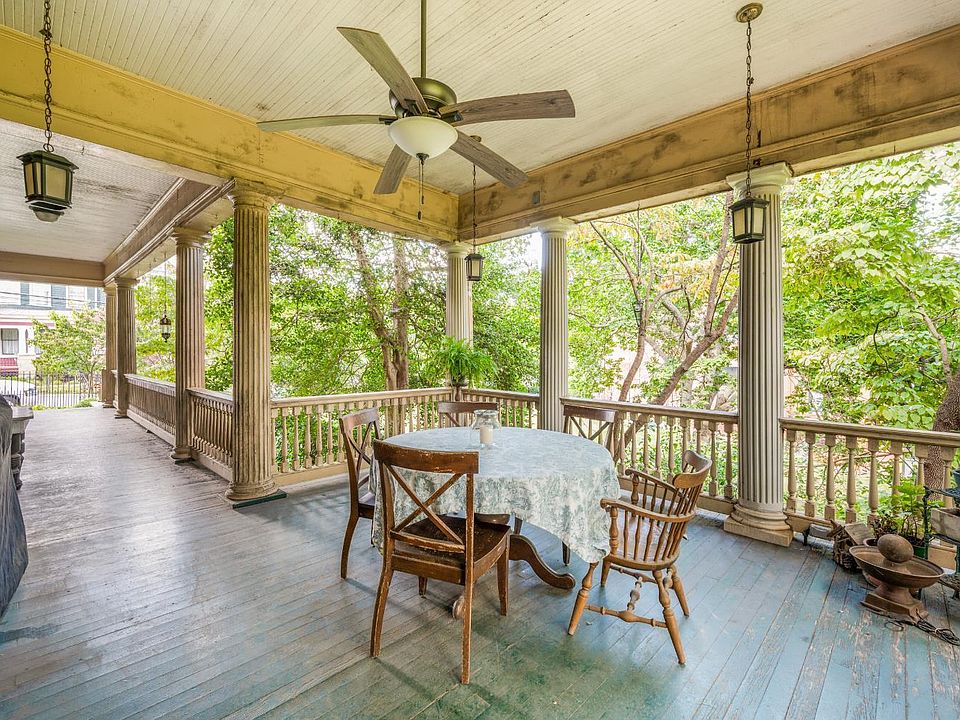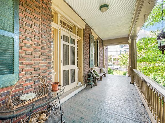 The exterior is defined by its massive porches and elegant brickwork, creating an imposing presence on one of the city’s most historic streets. This unique property for sale combines outdoor grandeur with the practical benefit of an extra lot for expanded yard space or parking.