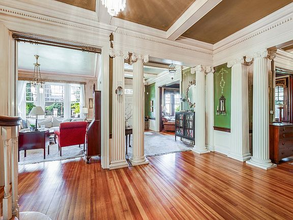 The interior showcases unparalleled craftsmanship, from the preserved plaster walls to the stunning freestanding tubs in the master suite. This rare residence for sale is a dream for any old-house enthusiast seeking a home that has retained its 1909 soul.