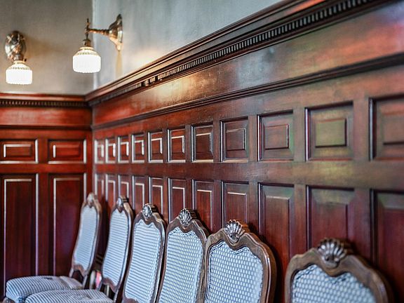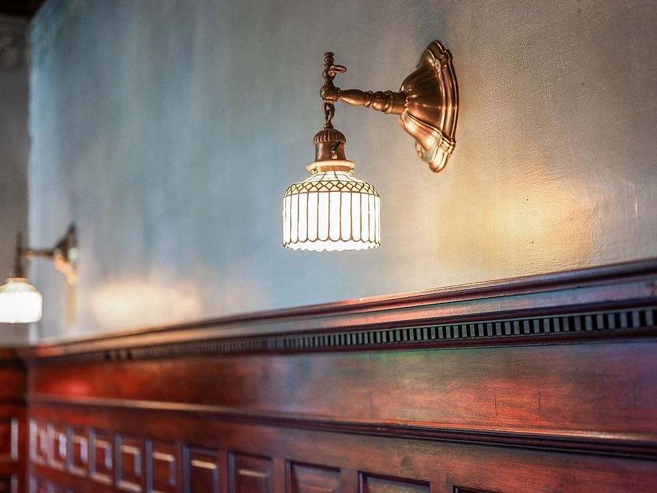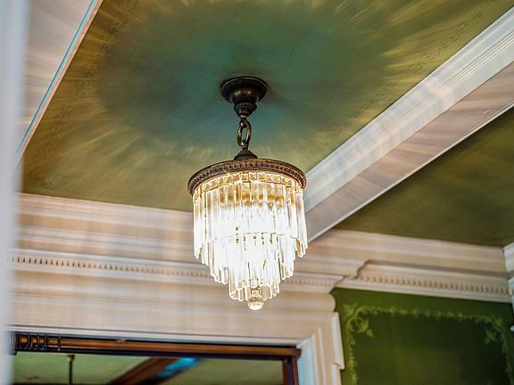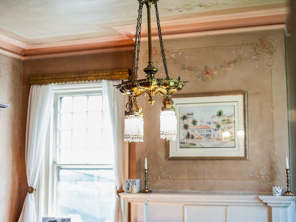 - Vintage Fixtures: Original ornate light fixtures, including coordinating wall sconces and ceiling pieces.