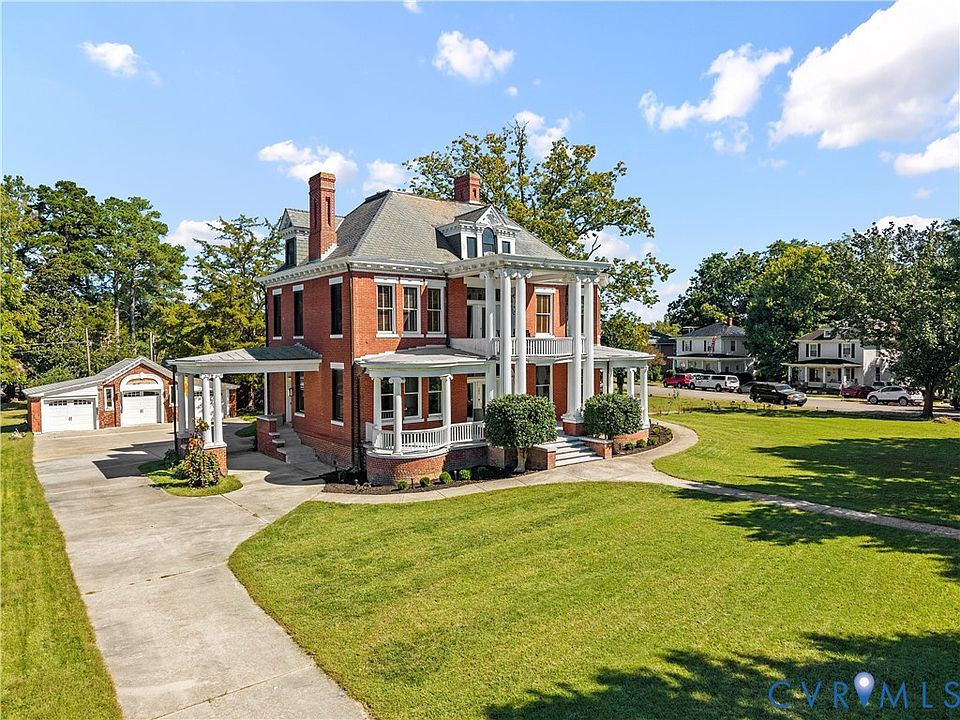With 4,964 sq ft of finished living space and an additional 1,943 sq ft unfinished basement, this home offers room for everyone. Built of solid brick with 14-inch-thick walls, an original Buckingham slate roof, and a 3-car brick garage, it’s a lasting testament to early-20th-century craftsmanship. Updates include: Remodeled bath, partial roof and partial window replacement, chandeliers/lighting, hot water heater, appliances, and solar panels for efficiency. Less than 30 minutes to Farmville or Chesterfield, the Oliver Mansion offers small-town charm, rich history, and room to dream. Here, every sunset over the wrap-around porch feels like you’re part of Crewe’s legacy — because in many ways, you are. SOLD AS-IS. Home has exterior deferred maintenance and also has some knob & tube electrical.