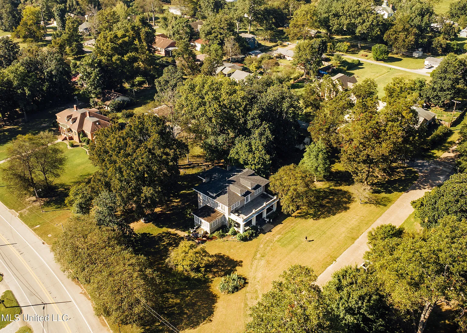 The first thing you will notice about this property is how it sits so proudly on its land. It occupies over an acre right in the heart of town. Because it has road frontage on three sides, it feels like a private estate. The house is surrounded by massive, mature shade trees that have likely been there as long as the home itself. When you pull into the circle drive, you immediately feel like you are stepping back into a slower, more graceful time.