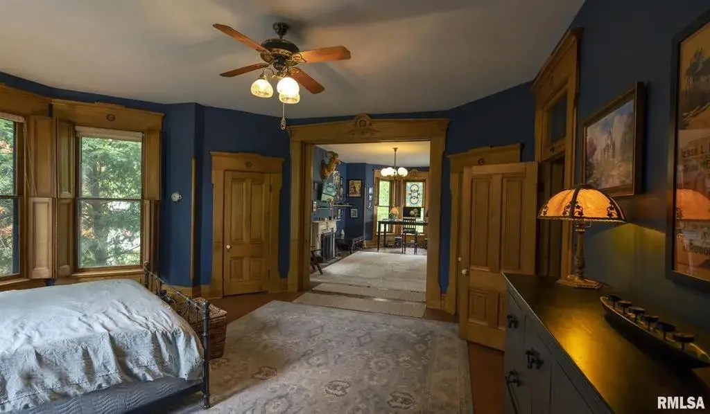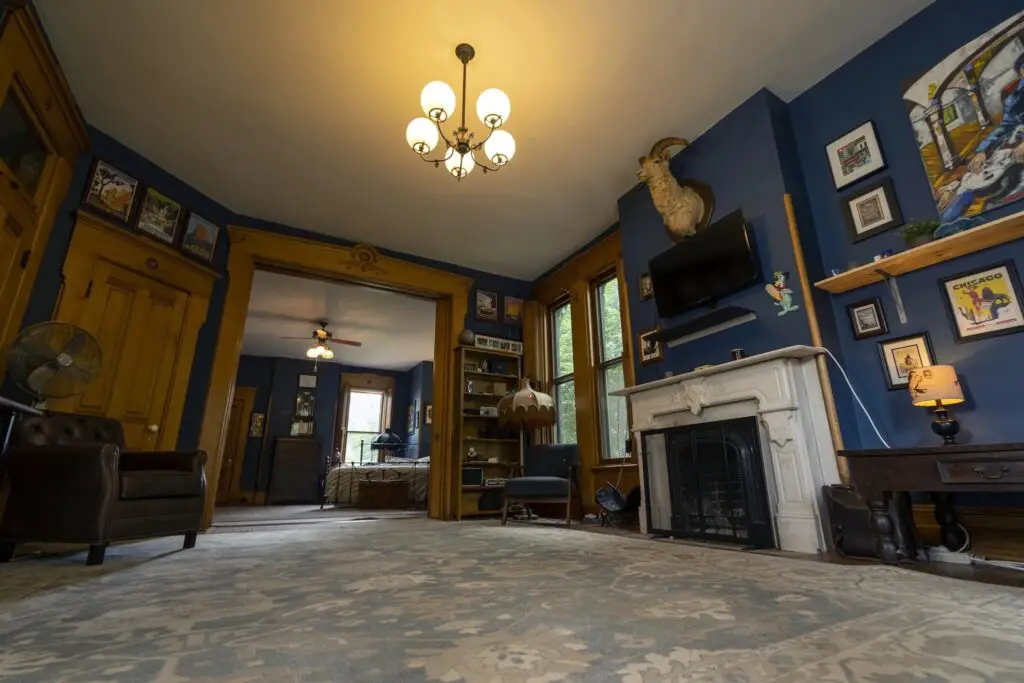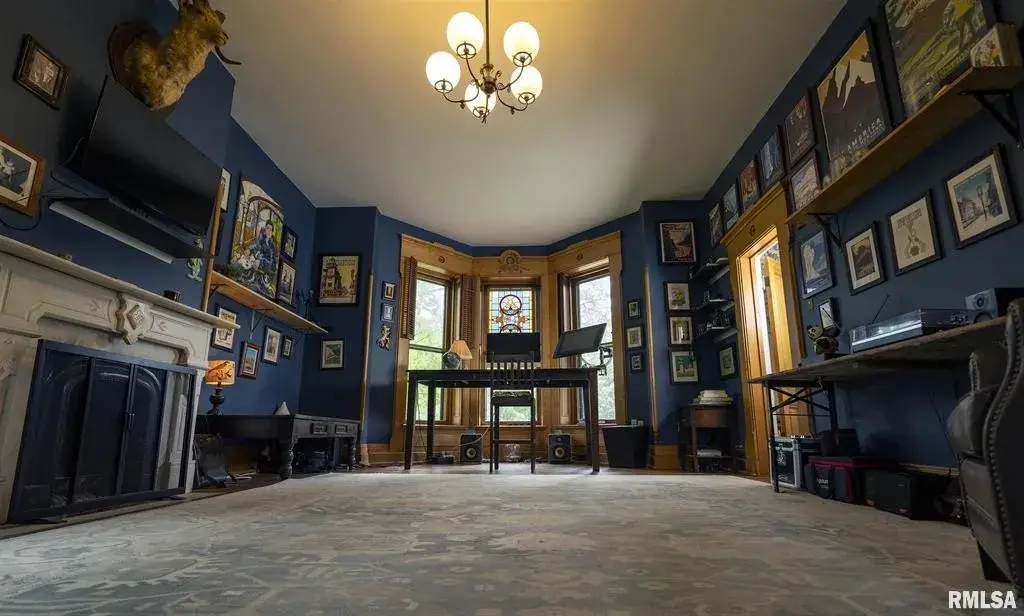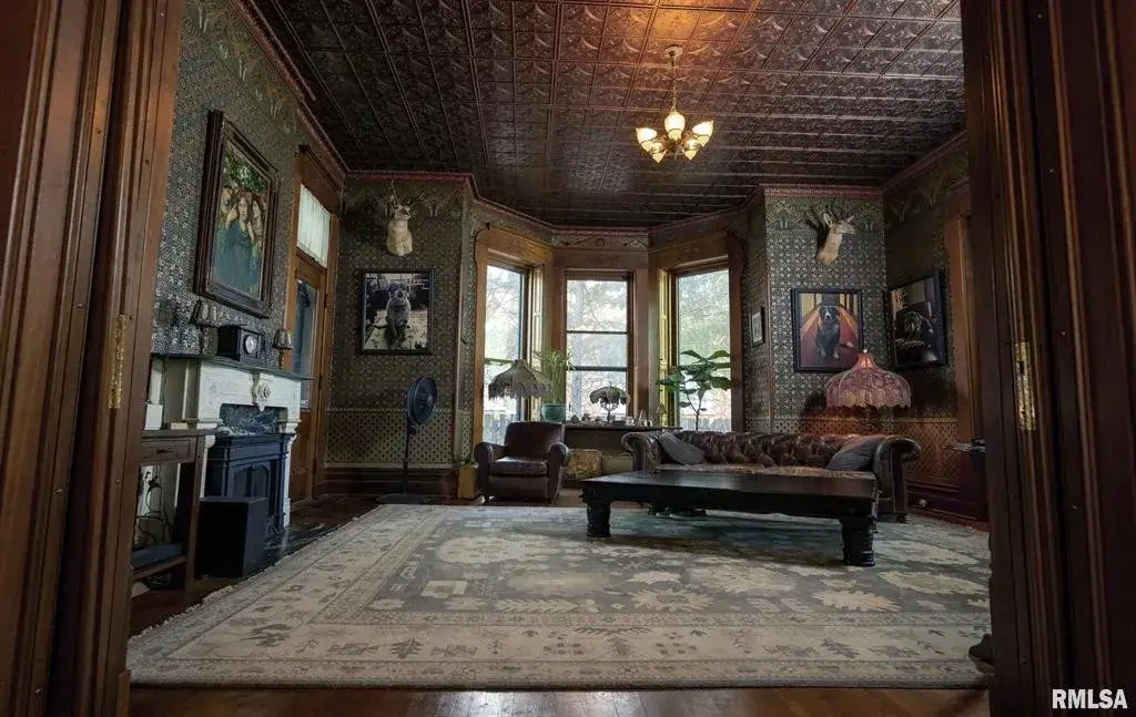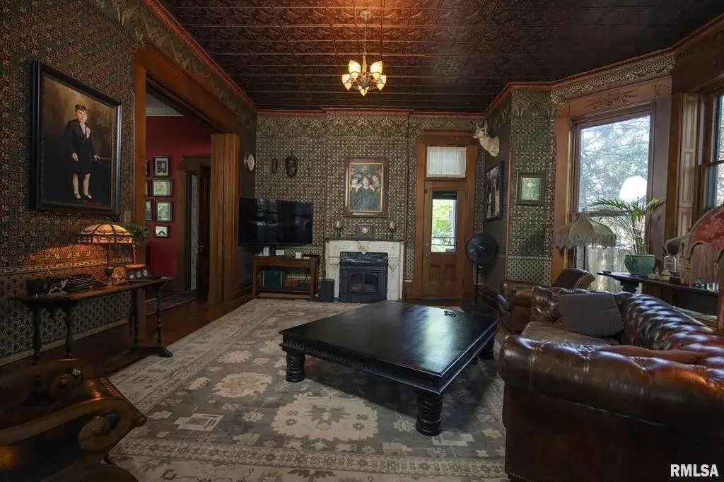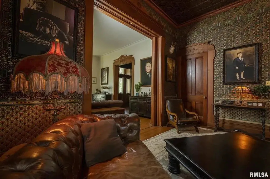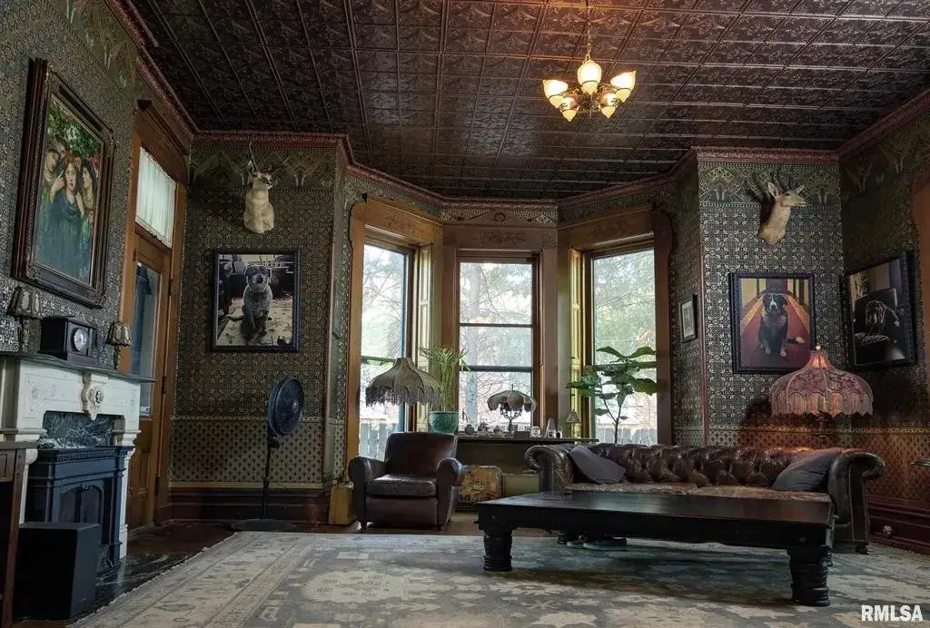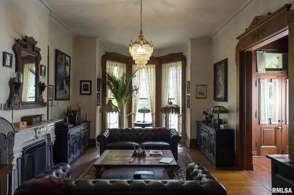 The home boasts three marble fireplaces, all in working order, each one distinct in its carving and veining. Marble fireplaces were the epitome of prosperity at the time of construction, and the fact that all three remain functional underscores the quality of the original work as well as the careful stewardship of past owners. Fireplaces of this scale and beauty add warmth and grandeur, anchoring the living spaces in their Gilded Age origins while offering modern comfort during Illinois winters.