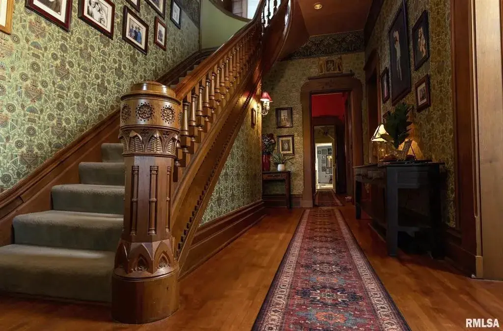 From the moment one arrives, the home’s stately presence is unmistakable. The façade signals the craftsmanship that waits inside—fine woodwork, tall windows, and a symmetrical Victorian composition that reflects the ambitions of Quincy’s wealthiest residents during the city’s boom years. This neighborhood, known for its impeccably preserved historic homes and tree-rich avenues, showcases the city’s architectural heritage, and 1469 Maine Street ranks among its most striking examples of domestic craftsmanship. While many houses from this era have undergone layers of alteration, this one preserves much of the original interior finishes that define late-19th-century Midwestern architecture.