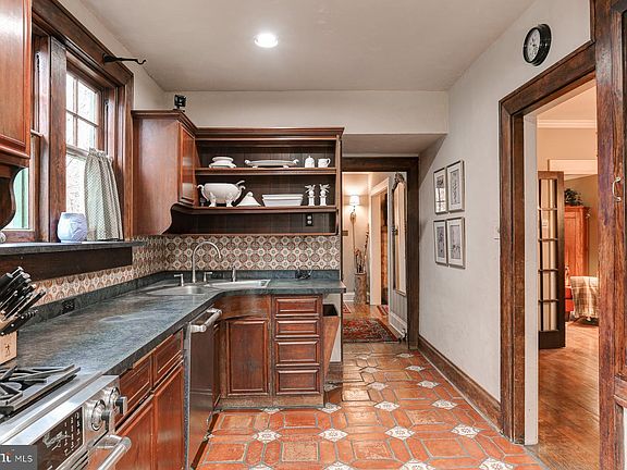 The dining room is formal and elegant, making it a great place for holiday dinners or Sunday brunches. It leads right into an eat-in kitchen that has been updated with stainless steel appliances. You get the best of both worlds here: the classic look of an old home and the easy use of modern tools. There is plenty of cupboard space for all your pots and pans, so keeping things tidy is easy.