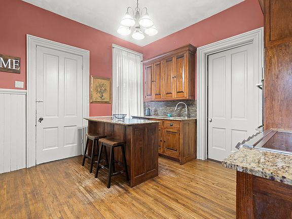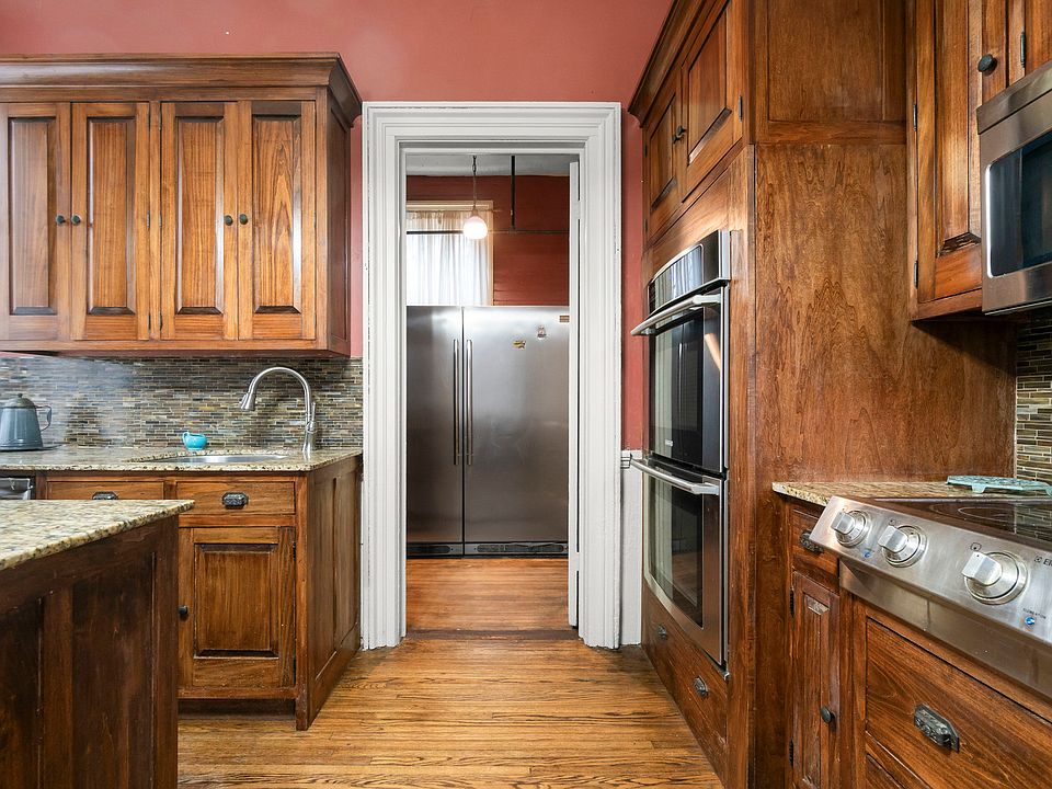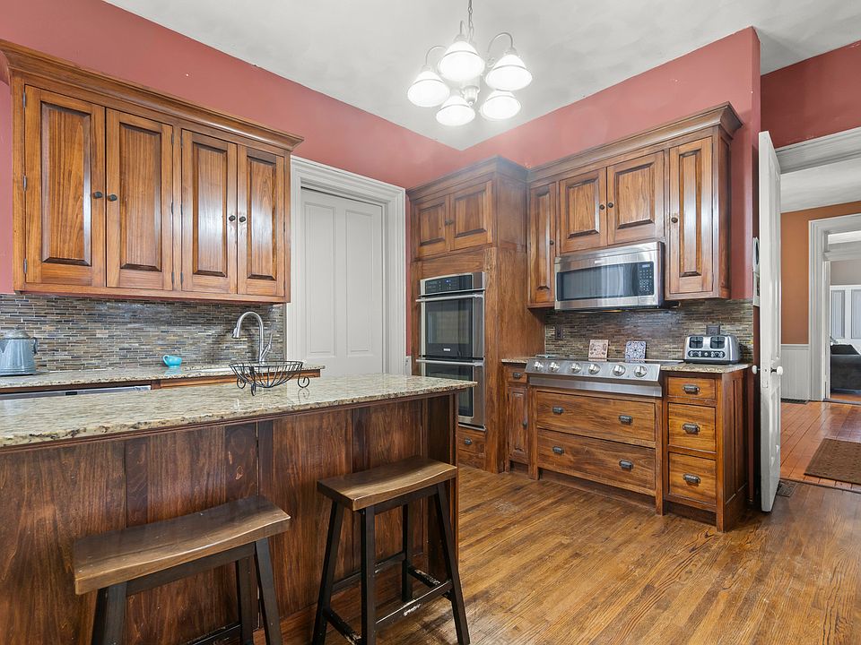 Even though the home is old, the kitchen is ready for modern life. It has been updated with custom poplar cabinets and beautiful granite countertops. It even has a butler’s pantry, which is perfect for keeping things organized when you are hosting a big dinner. With high-end stainless steel appliances and double ovens, it is a great spot to cook a big family meal.