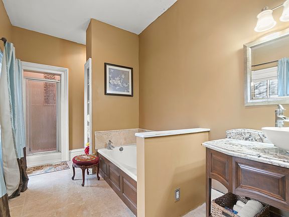 With over 3,700 square feet, there is plenty of room to spread out. There are six bedrooms, including a very large primary suite on the second floor. That main bedroom even has its own private bathroom with a whirlpool tub. The main level has a formal dining room for holiday meals, a cozy parlor, and a den that would make a perfect home office for anyone working from home.