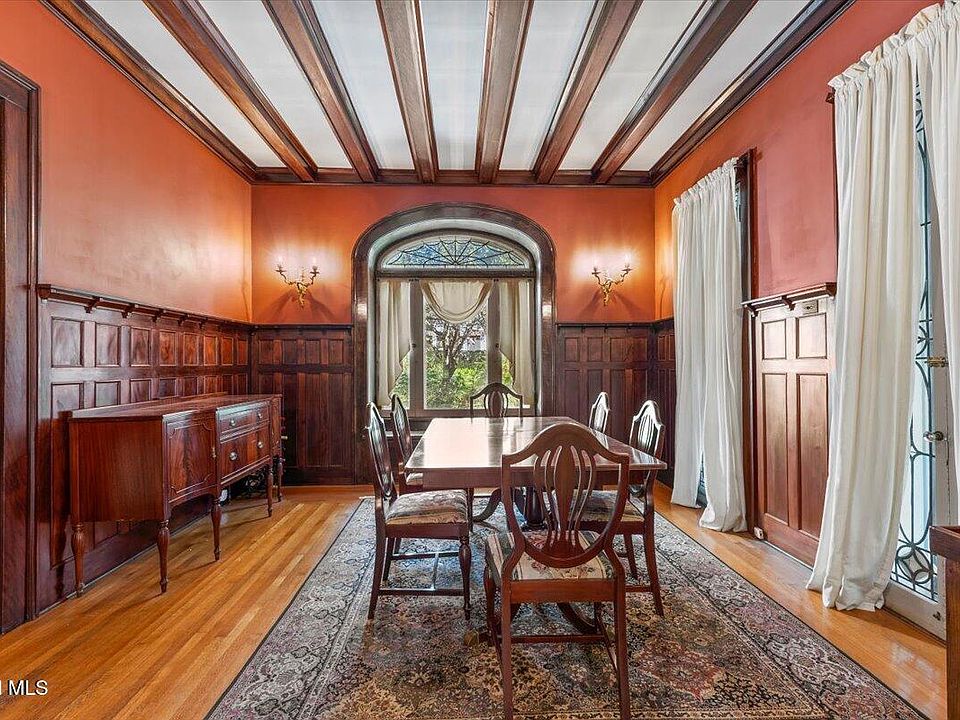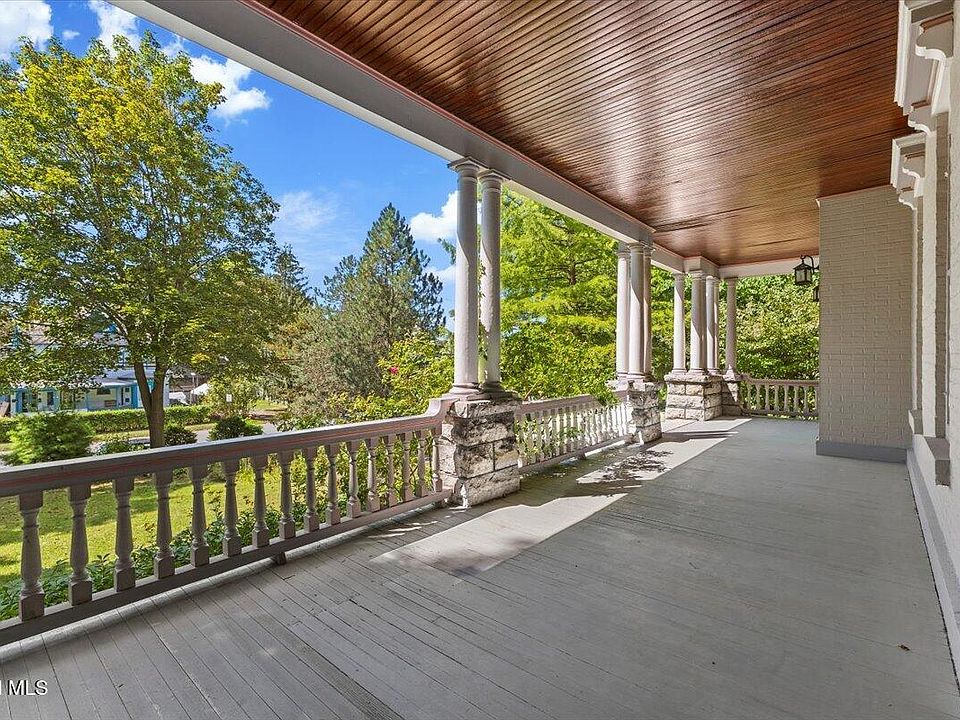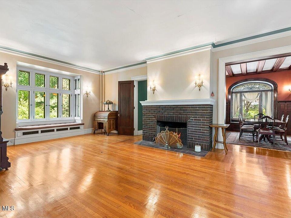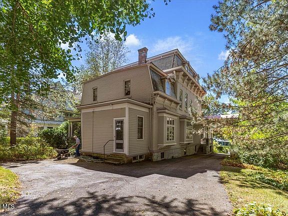 Step into the pages of history with this majestic brick Victorian, built in 1860 and lovingly preserved on an expansive .87-acre lot stretching block to block. From the moment you arrive, the home’s soaring rooflines, intricate woodwork, and sweeping wrap-around porch overlooking Guy Park avenue promise something extraordinary within. Inside, the grand foyer sets the tone with richly carved wood details and exquisite period lighting that bathes the space in a warm glow. The living room, anchored by a massive fireplace with an ornate mantle, invites gatherings both intimate and grand. The formal dining room, with double French doors leading to a private covered patio, blends indoor elegance with outdoor serenity—perfect for summer evenings under the stars. The kitchen combines charm and function with a window bench seat offering a cozy spot for morning coffee, while the mudroom adds practical convenience. Upstairs, discover four spacious bedrooms filled with light from stained glass and leaded windows, plus two full baths featuring period details rarely seen today. A third-floor attic stretches wide and tall, a blank canvas awaiting your vision—imagine a private artist’s studio, a library hideaway, or a sunlit office retreat. Outside, lush, manicured gardens, mature trees, and open green space offer a peaceful escape, while the 3+ car carriage barn with a full loft provides endless possibilities for workshops, storage, or future expansion. With hardwood floors gleaming underfoot, custom built-ins, and original details at every turn, this remarkable home is more than a residence—it’s a living work of art, ready to welcome its next chapter.