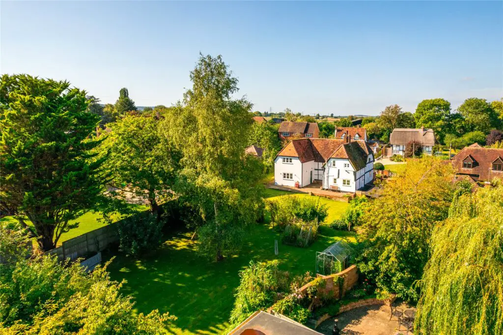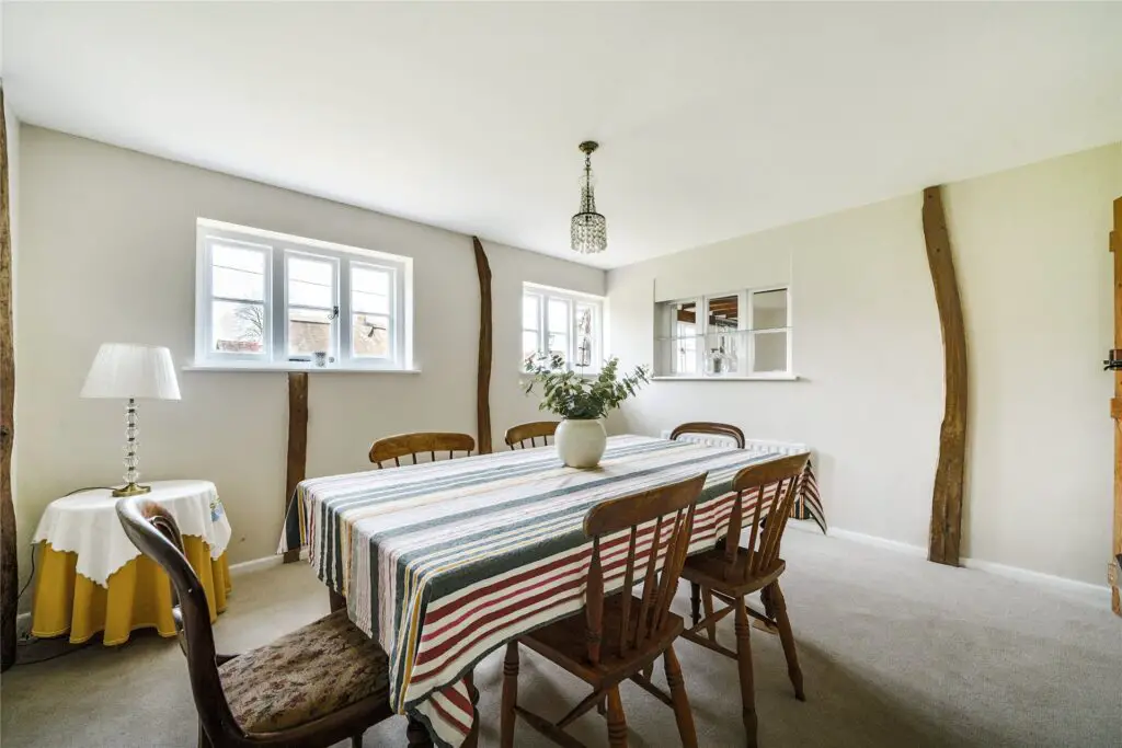 - Key Features: Grade II Listed, massive brick inglenook fireplace, original bread oven, exposed ceiling timbers, latch doors, and a gated driveway.