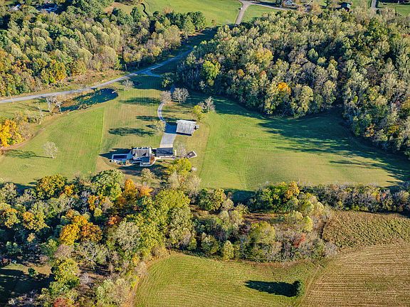 This beautiful home has everything you hope for and throws in extras. Situated on the most picturesque 20 acres of rolling farmland, you have a beautifully updated home, a barn, a gorgeous heated pool, and a farm pond that’s fully stocked.Upon entry, you’ll notice the soaring cathedral ceilings with rich hardwood floors on the main level. Immediately you’ll notice a large living room that’s centered around a gas fireplace and sizable enough to fit your family and guests.