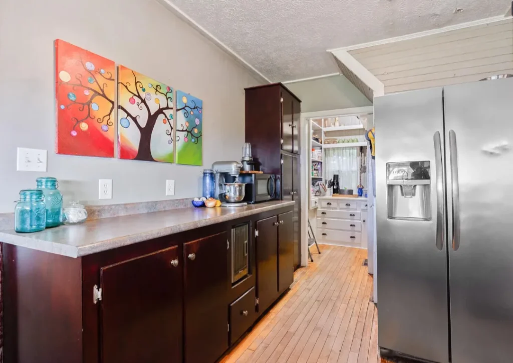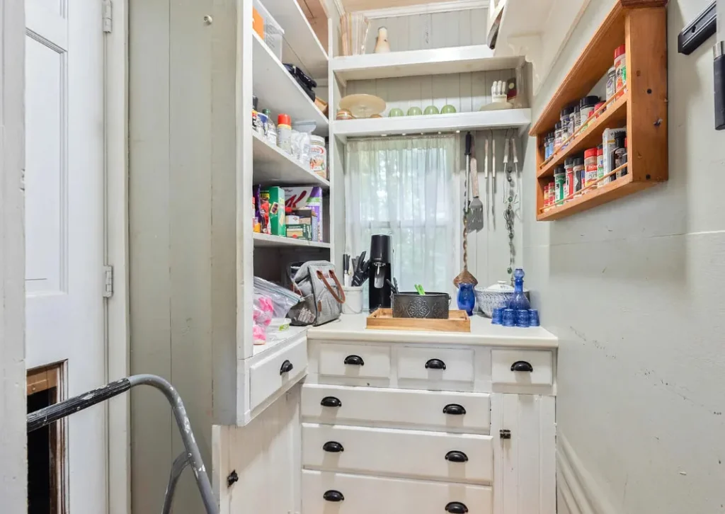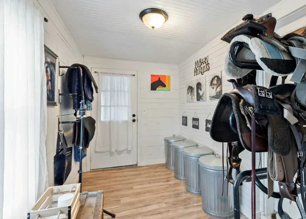 To the left of the dining room, the kitchen offers ample space and practicality. Abundant cabinetry provides plenty of storage, while a large pantry complete with built-ins adds even more room for cookware, dry goods, or small appliances. The kitchen retains much of its original charm while benefiting from upgrades that enhance functionality. A connected mudroom sits just off the kitchen, making it the ideal spot for riding gear, boots, or seasonal clothing. This mudroom also provides direct access to the garage, adding an everyday layer of convenience that farm and homestead owners especially appreciate.