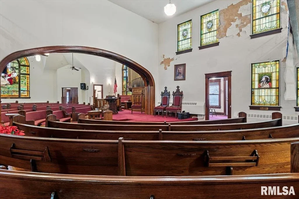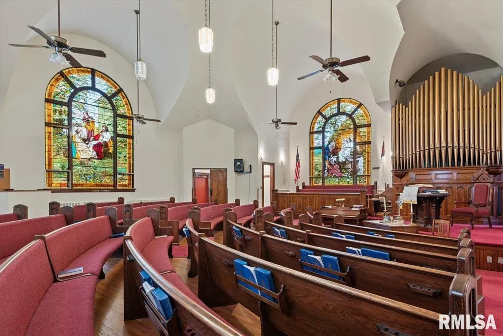 - Key Features: All-brick construction, 28 original stained-glass windows, custom-built pipe organ, original woodwork, and a spacious lower-level kitchen.