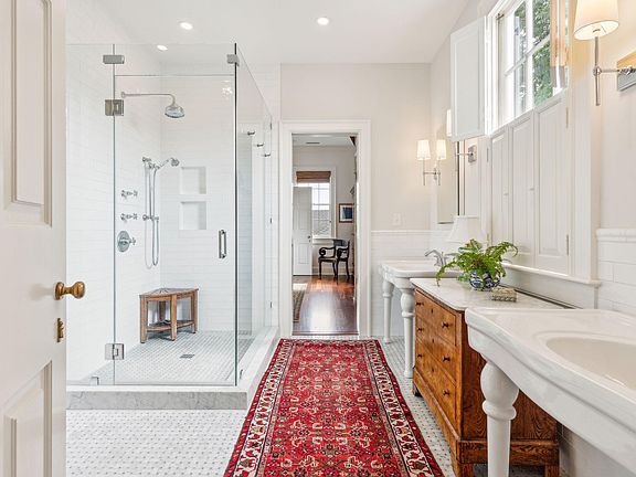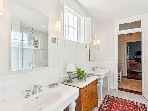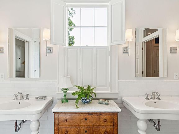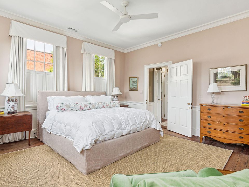 - Key Features: Heated salt-water pool, original heart-of-pine floors, “secret” lacquered bar, carriage house, outdoor shower, and gated parking for six cars.