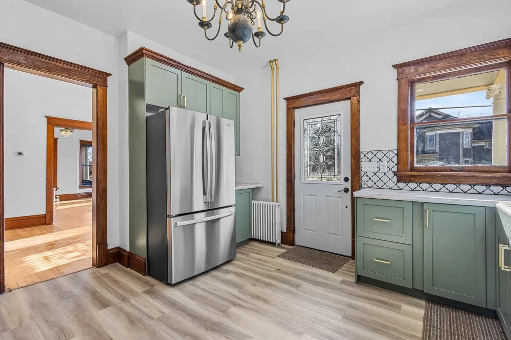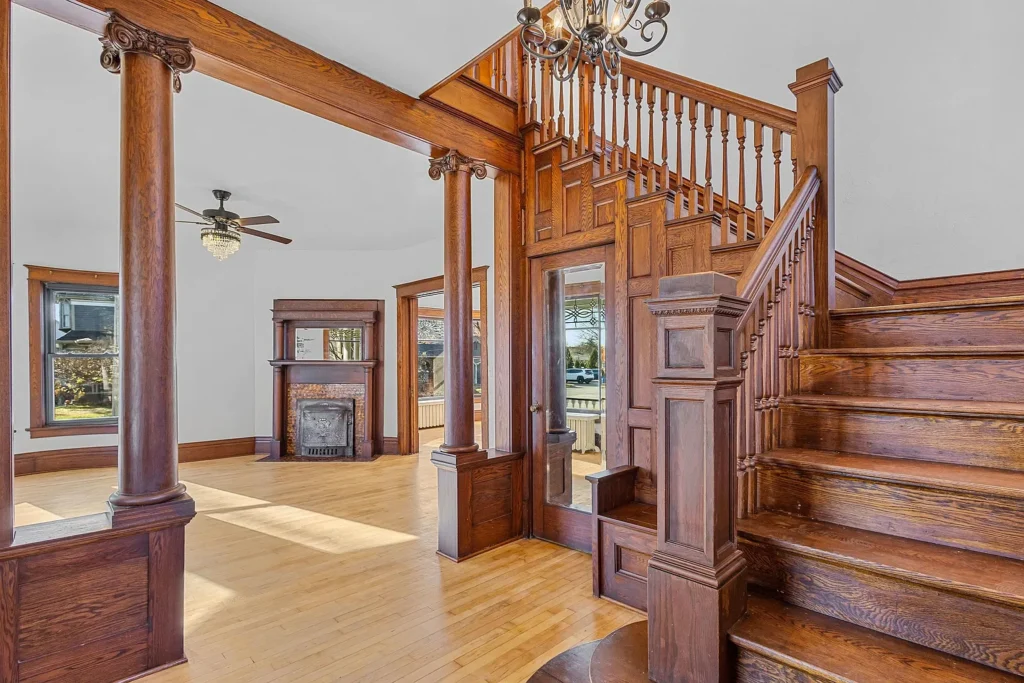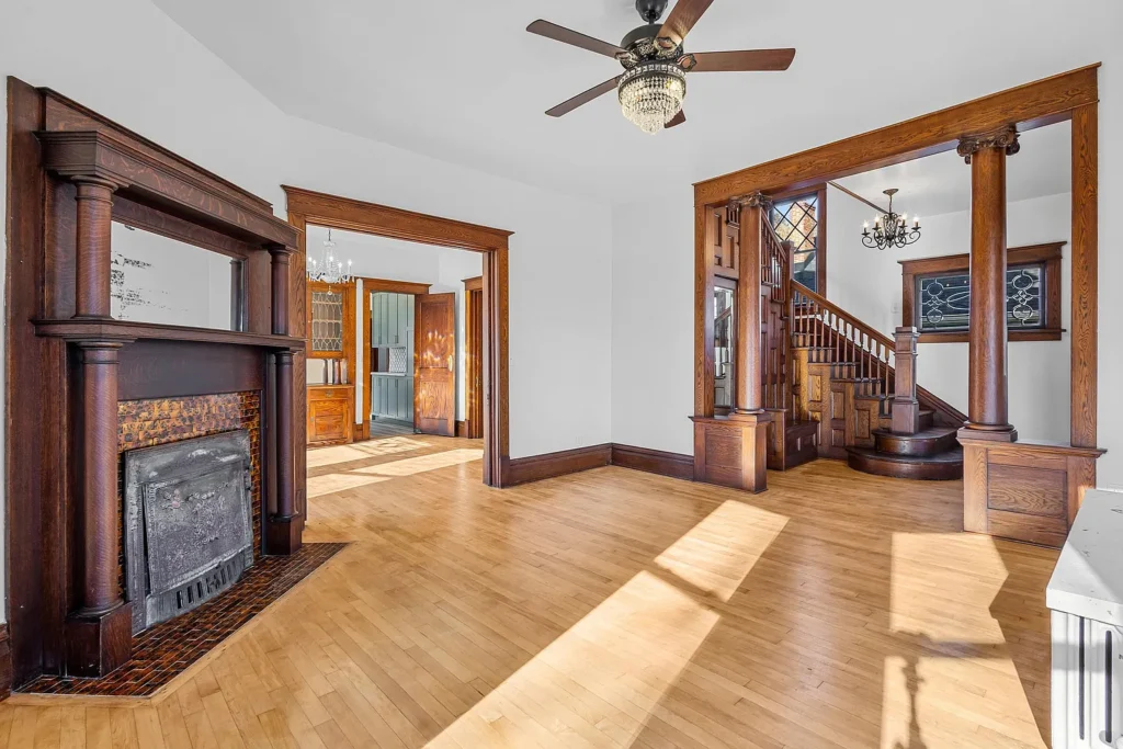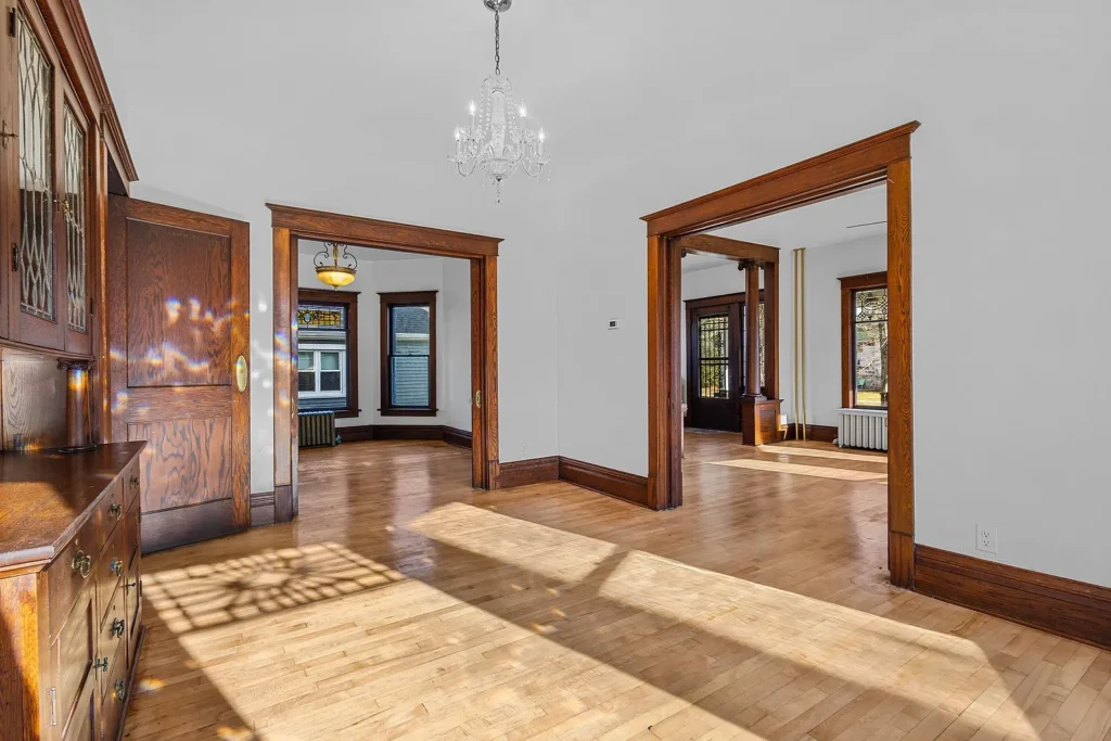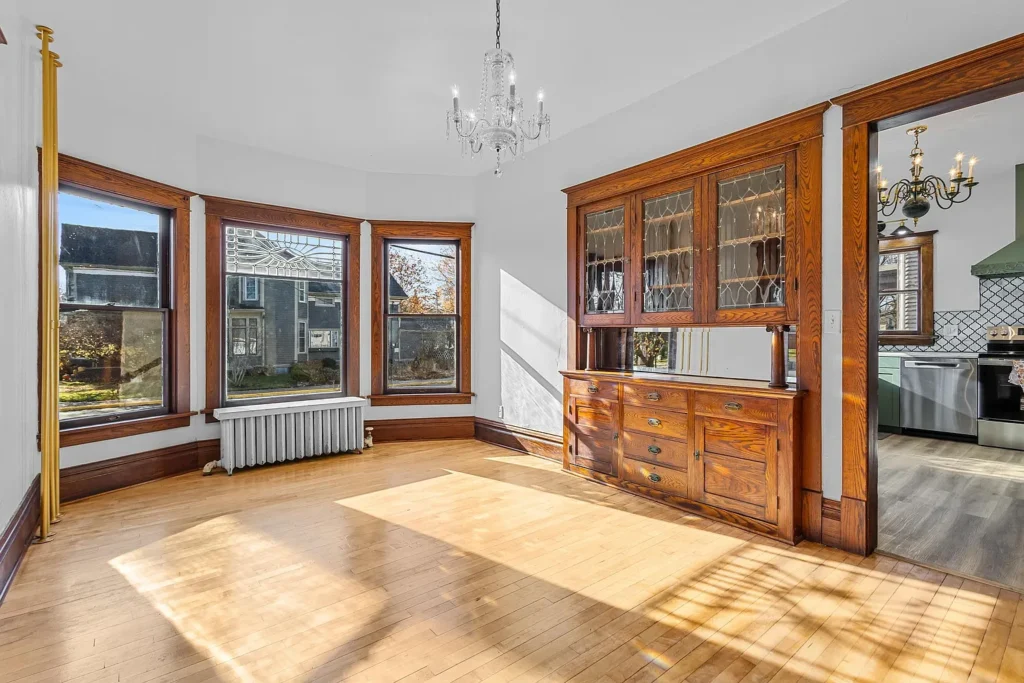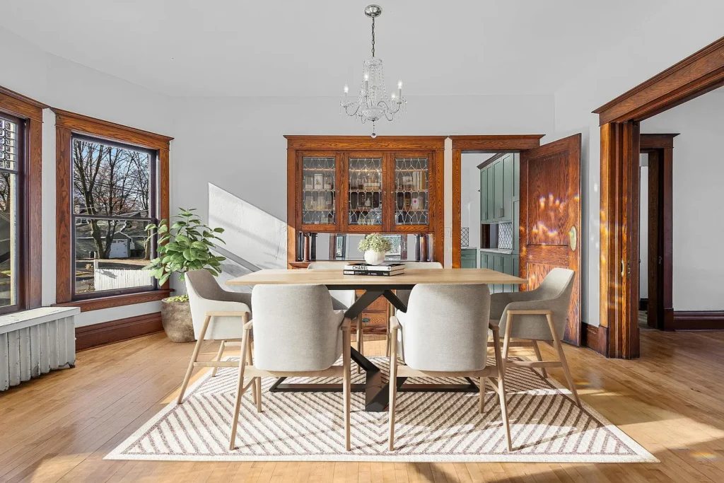 As soon as you walk through the front door, the original woodwork takes your breath away. The craftsmanship from a hundred years ago is everywhere, from the sturdy solid wood doors to the built-in cabinets that you just don’t see anymore. The hardwood floors gleam under the light of elegant vintage chandeliers, creating a glow that makes every room feel cozy and important.