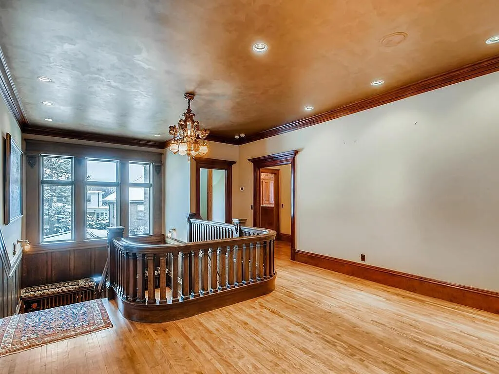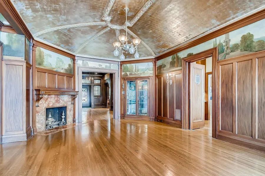 Inside, the house is just as stunning. The main level is full of “gracious public rooms.” This is a fancy way of saying the rooms were made for big parties and cozy family nights. My favorite part has to be the dining room. It features a barrel-vaulted ceiling and beautiful murals on the walls. Imagine having a holiday dinner under a ceiling that looks like a piece of art!