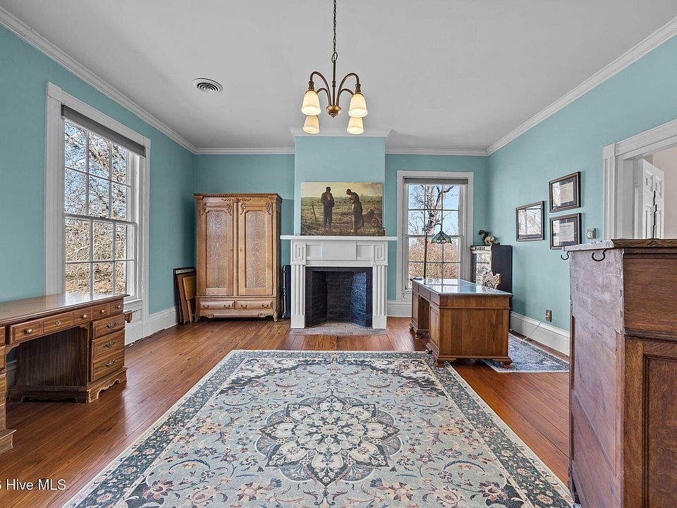 - Key Architectural Features: Unique wishbone staircase, heart pine floors, and 10 original fireplaces.