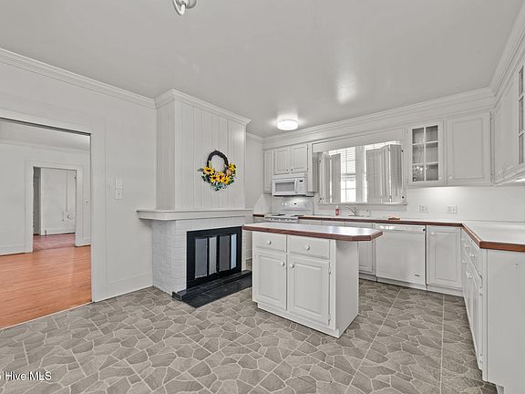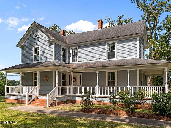 Historic 1921 Victorian Farmhouse – 1 Acre in the village of Yeatesville – Pinetown Discover the charm of a true classic with this 1921 Victorian farmhouse set on 1 acre with farm views. Known locally as the (Sam, Edna, & Martha) Robbins Home, built by Dr. & Mrs. M. L. Jackson. This 2-story, 2,600+ sq. ft. home offers 4 bedrooms, 2 full baths, and 10-ft ceilings. Special features include wood shake siding, a wrap-around porch, tongue-and-groove walls, and a kitchen fireplace, hardwood pine floors, herringbone pattern hardwood floor in foyer. The kitchen also offers updated cabinets, appliances, prep island, and breakfast area. A laundry closet with washer and dryer, plus a spacious walk-in attic, provide everyday convenience and storage. Comfort is provided by propane heaters and window A/C units, with pricing reflecting the opportunity to add a central HVAC system and updates to suit your vision. Extras include a 20′ x 22′ detached garage, Thermoglass windows throughout, and a termite bond in place. Just minutes from Historic Bath (7 mi), Belhaven (9 mi), and Washington (20 mi), with local schools nearby. A rare chance to own a piece of history and make it your own!