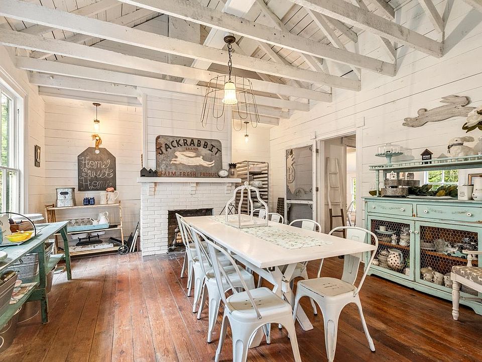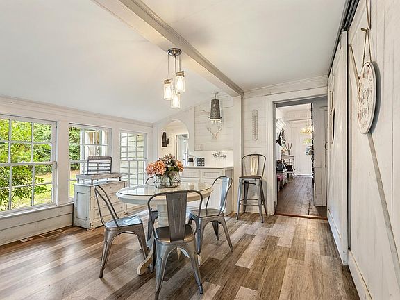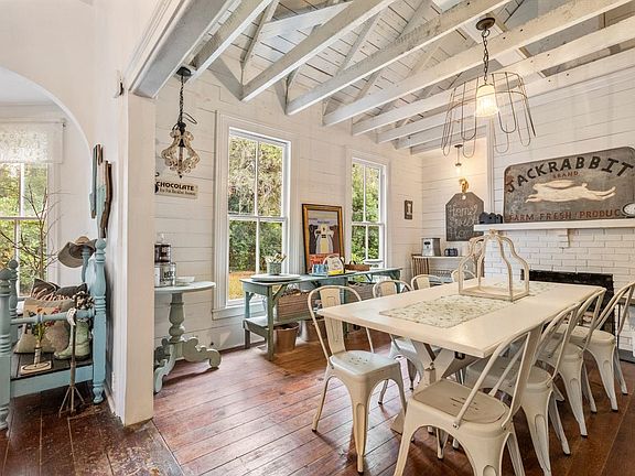 - Rooms: 9 total rooms, including two front parlors, a family room, and a formal dining room with exposed original rafters.