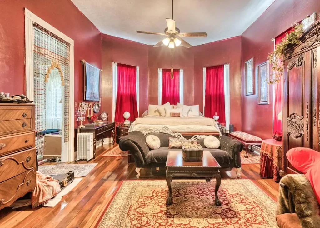 The master bedroom offers a generous retreat within the home. Here, you’ll find not only a spacious bedroom but also a private dressing room and walk-in closet. These thoughtful features reflect the home’s vintage design while accommodating modern needs. The master suite is designed to be a sanctuary—roomy, elegant, and full of natural light.