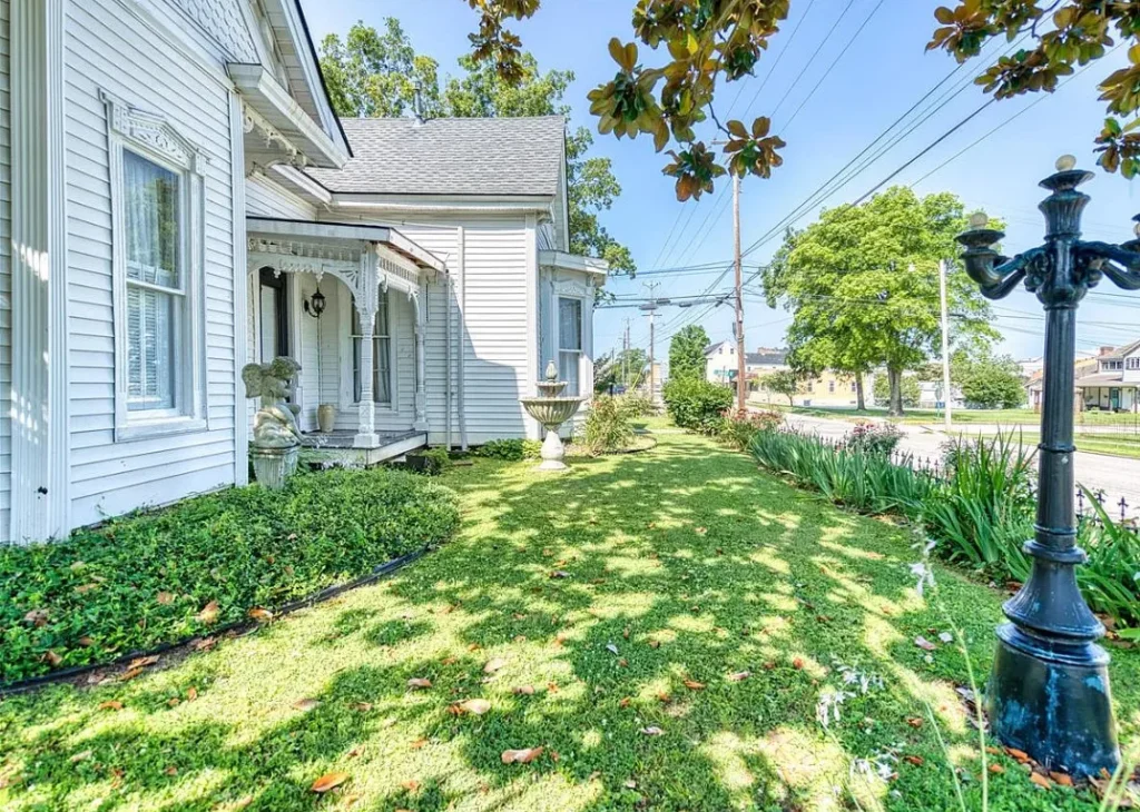 From the moment you arrive, you’ll be struck by the charm of this home’s exterior. Set on a picturesque corner lot, the house greets you with wrought iron fencing, a covered front porch, and the kind of curb appeal only a historic residence can offer. Decorative details on the façade hint at the craftsmanship of the late 19th century, while the landscaped yard softens the look with cheerful florals and lush greenery. Whether admired from the street or enjoyed from the porch, this is a home that instantly captures attention.
