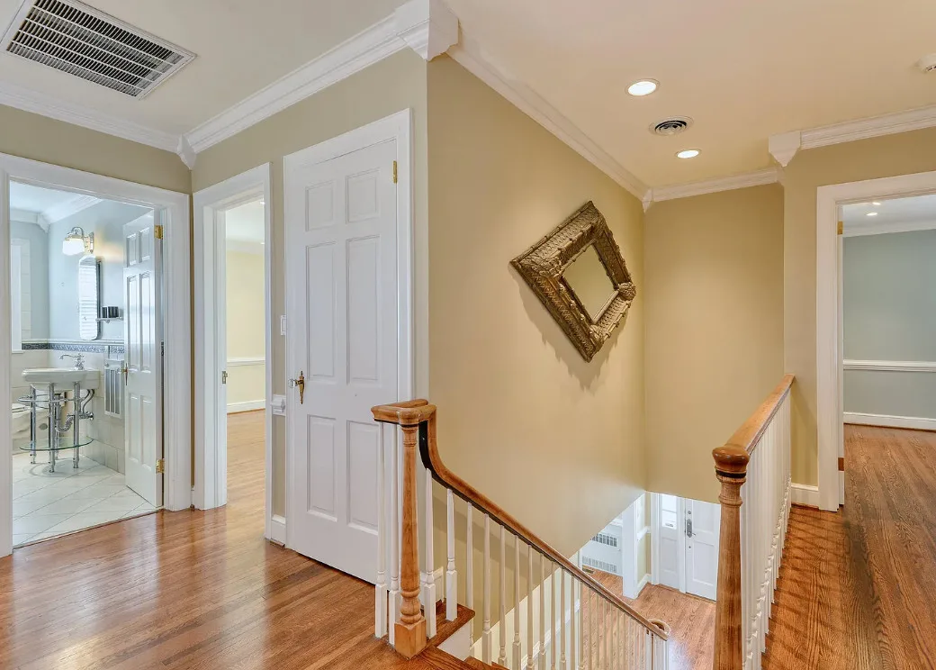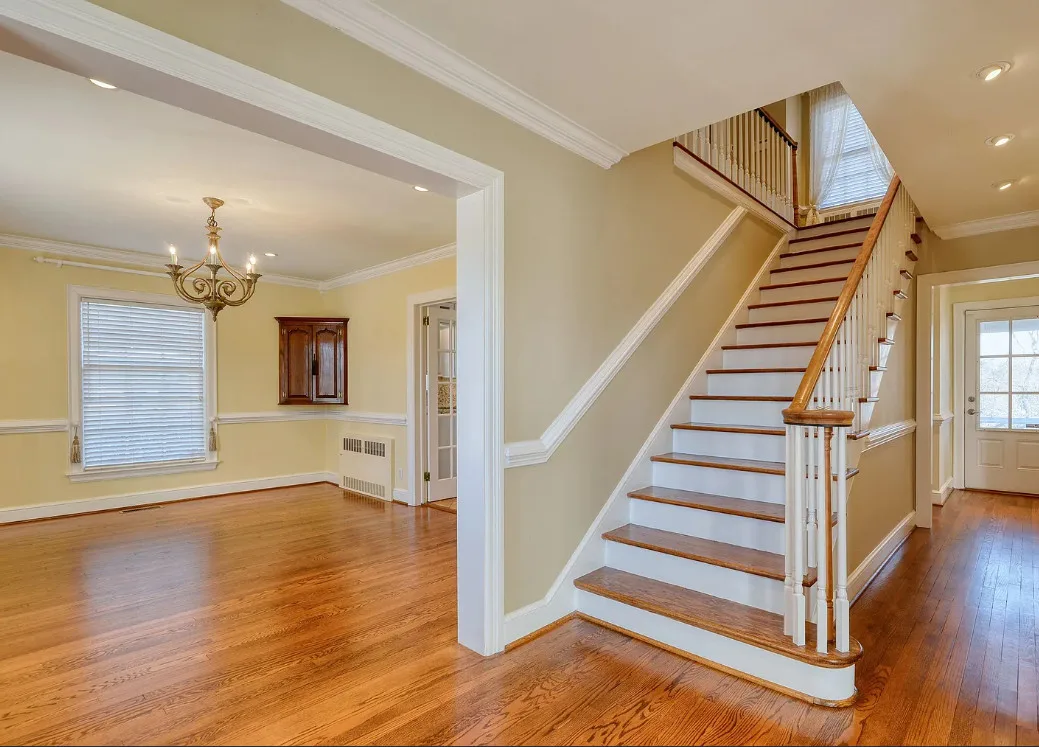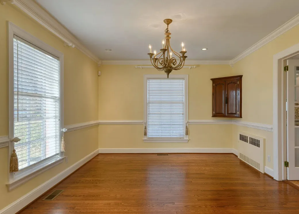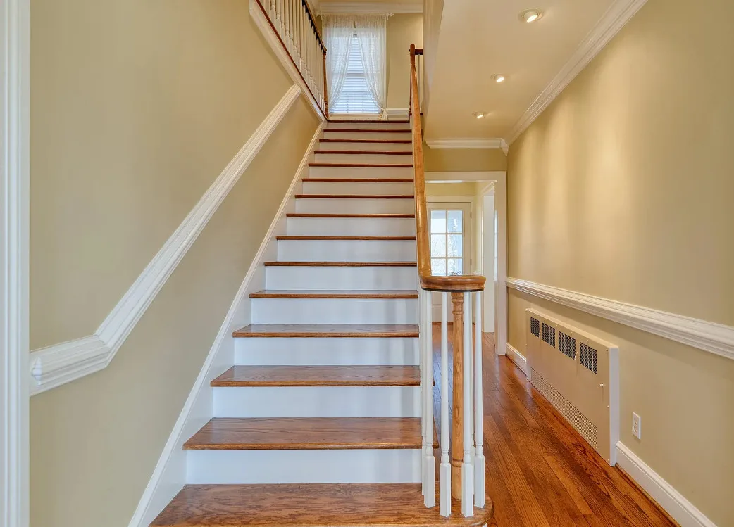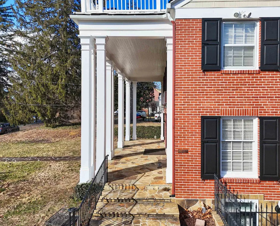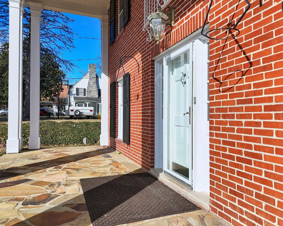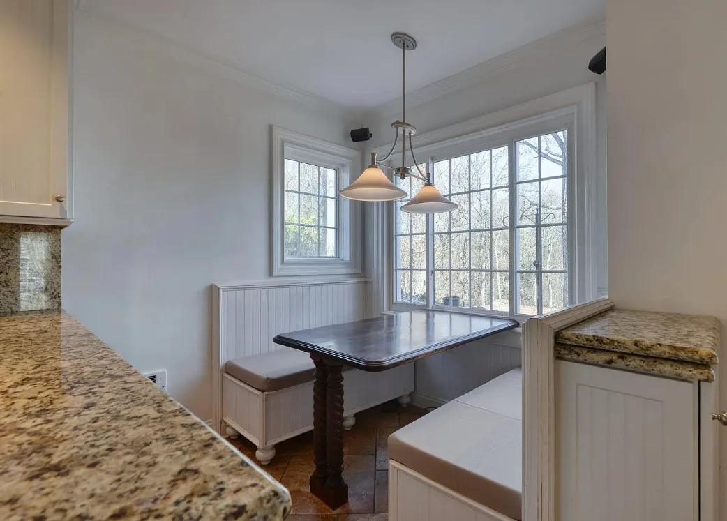 Inside, you’ll find original hardwood floors, elegant crown molding, and a spacious living room centered around a cozy wood-burning fireplace. The heart of the home is the updated chef’s kitchen, featuring granite countertops, a gas cooktop with a vented hood, and a charming built-in breakfast booth. The upper level offers three bedrooms, including a primary suite with a walk-in closet and a hall bath equipped with a jetted tub.