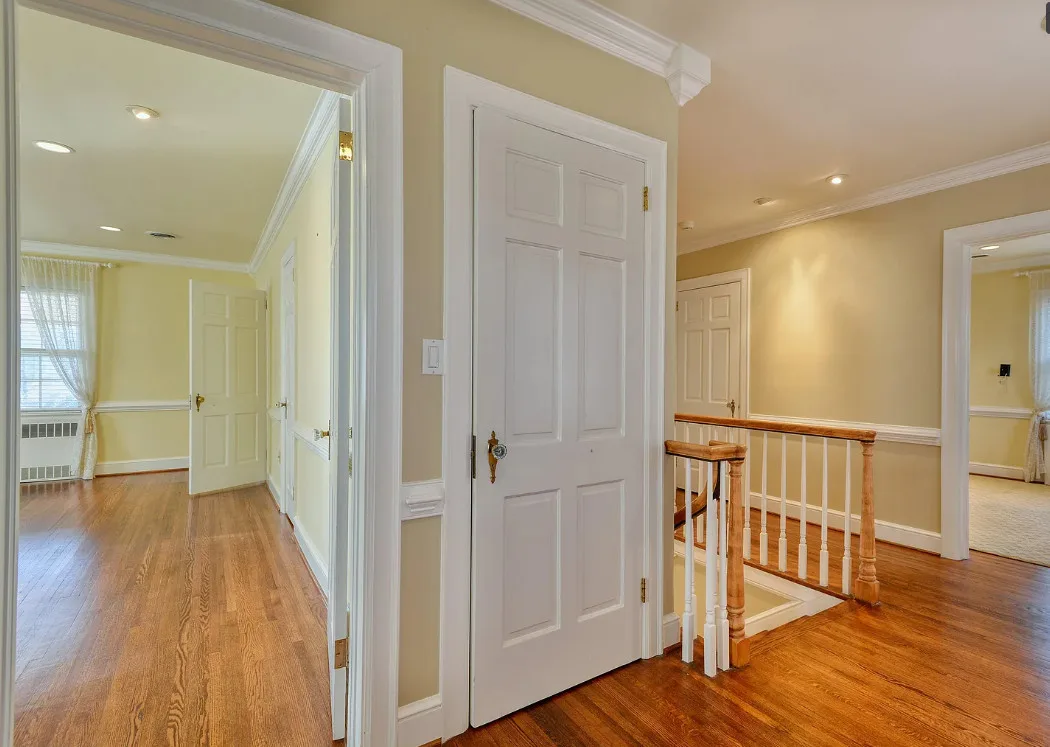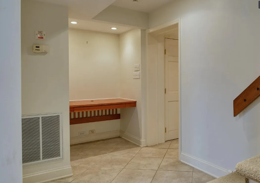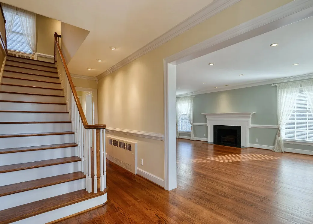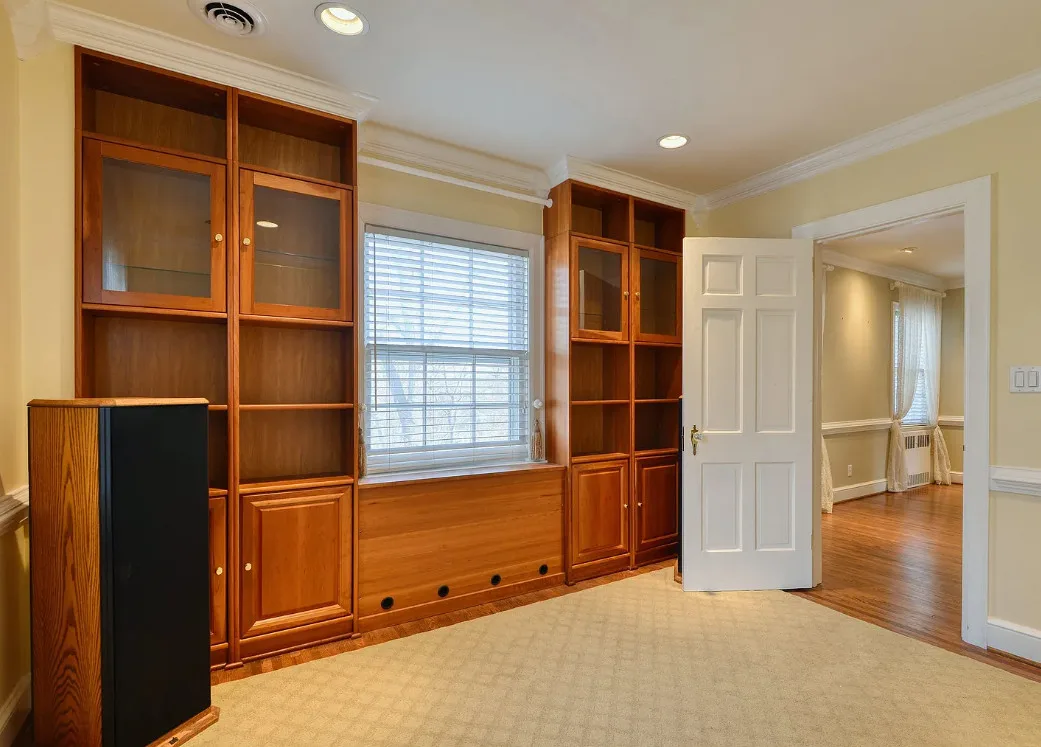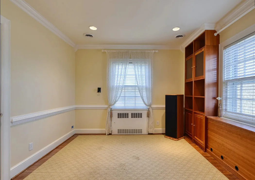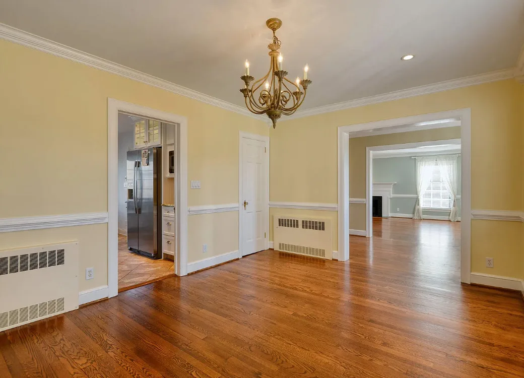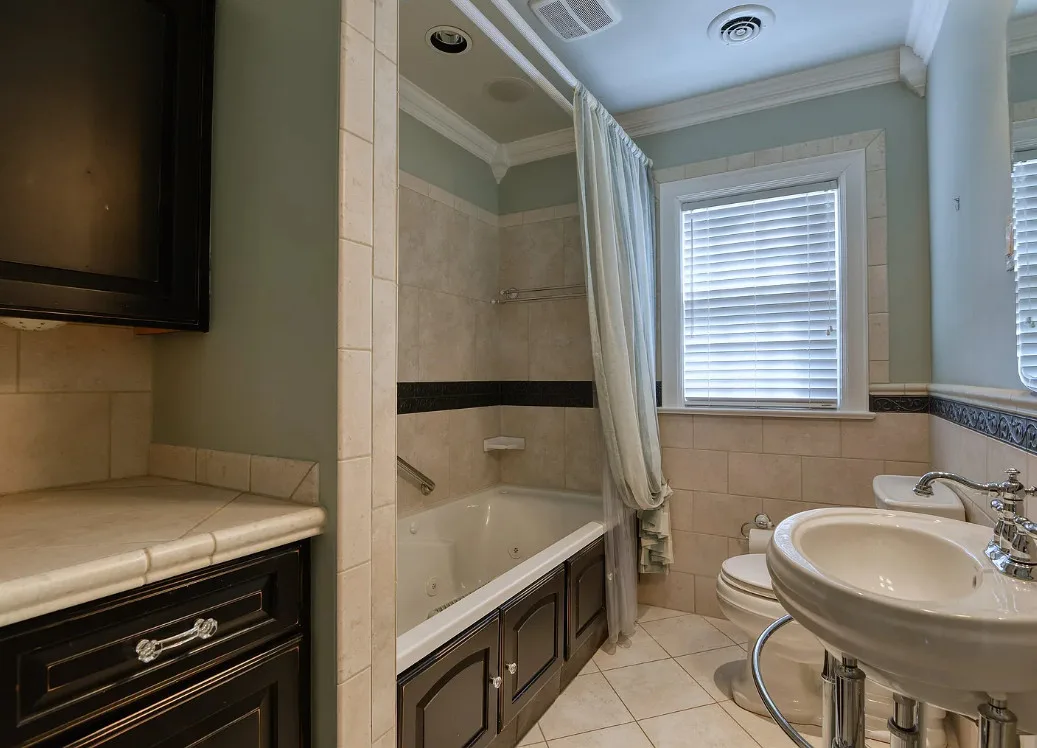 Inside, you’ll find original hardwood floors, elegant crown molding, and a spacious living room centered around a cozy wood-burning fireplace. The heart of the home is the updated chef’s kitchen, featuring granite countertops, a gas cooktop with a vented hood, and a charming built-in breakfast booth. The upper level offers three bedrooms, including a primary suite with a walk-in closet and a hall bath equipped with a jetted tub.