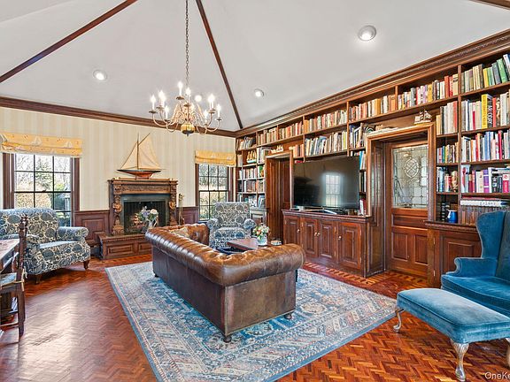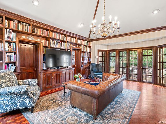 - Living Spaces: Elegant formal living room and a library/family room, both with wood-burning fireplaces and custom built-ins.