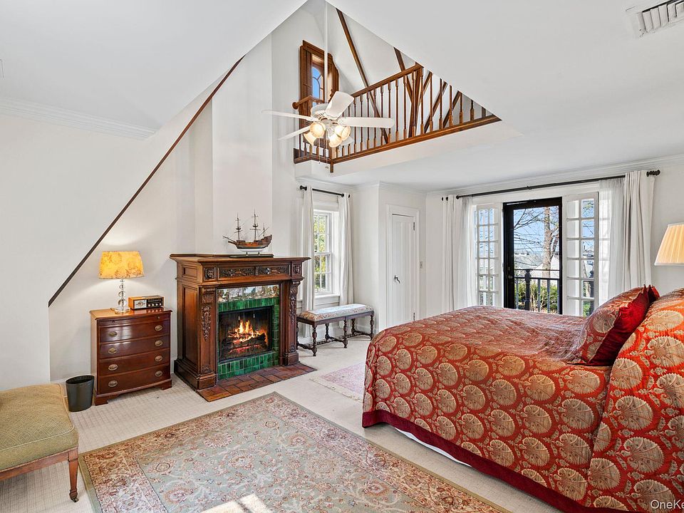- Primary Suite: King-size bedroom featuring a gas fireplace, antique mantle, and a Juliet balcony with water views.