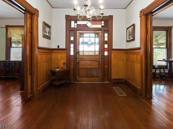 Spectacular Queen Anne Victorian w/Seasonal Panoramic Lake Views Minutes to Lake Hopatcong! Step into timeless elegance with this one-of-a-kind Victorian known as the historic William Arnott House. This architecturally significant home offers a perfect blend of original charm and modern updates. The grand wrap-around porch welcomes you into a gracious entry foyer and exquisite grand oak staircase and fireplace.