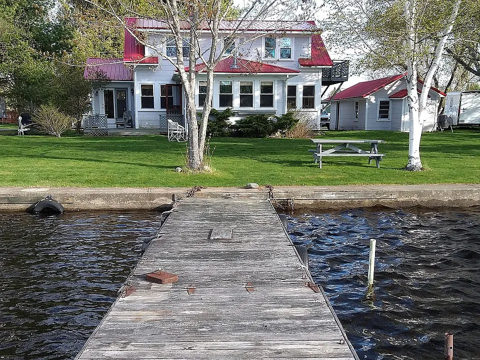 Perfect year round home or summer camp on the water. Swim or fish for salmon and bass off your private dock or take off in your boat and access the miles of lake and waterways right from your back yard. Two-story home with 3 bedrooms, 1 and 1/2 baths, large kitchen, dining room, living room, and bright sunroom with wood floors. Upper level has 2 BDR 1/2 bath and kitchenette space with a private entrance and a small deck overlooking the water. Home uniquely designed so that the living room, dining room, sun room and all bedrooms have great views of the water. Superb Sunsets from all these rooms or the back yard deck. New metal roof installed in 2020. Detached garage with attached small “fishing supplies” shed. Mature landscaping with flowering trees, lilac bushes and a raised bed garden. Nicely landscaped lawn right to the water’s edge w/ retaining wall! On town water and sewer, but has fully functional private well. 15 minutes away for the famous fly fishing destination of Grand Lake Stream. Perfect for anyone who loves traditional Maine waterfront, the loon calls, the fishing, the beauty of life in the slow lane.