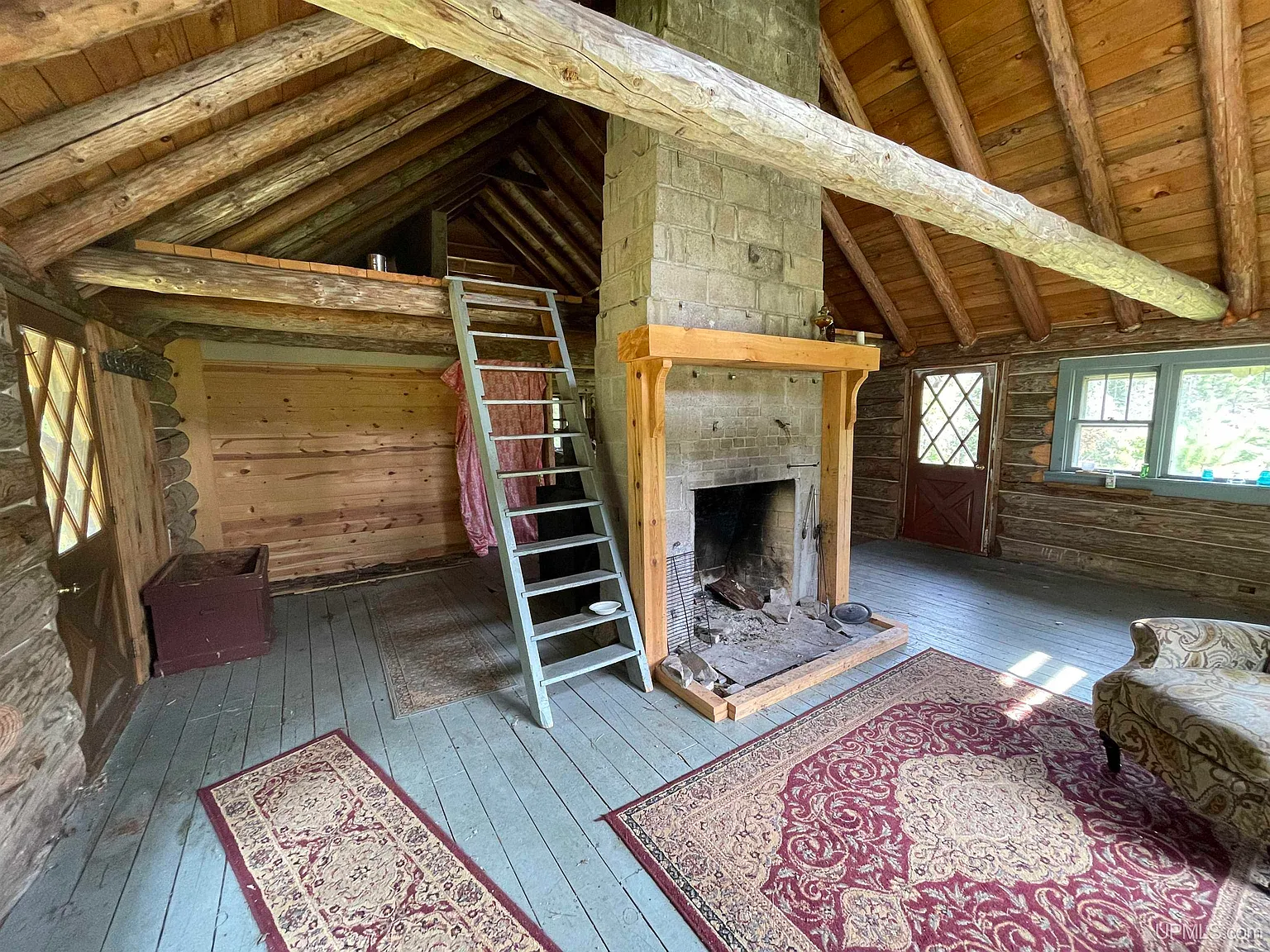 The rustic log cabin is full of character and perfectly suited for off-grid living or a seasonal retreat. While no bathroom is currently installed, the structure provides a solid foundation for customization or expansion.