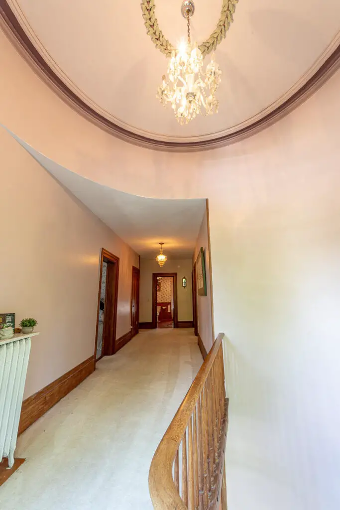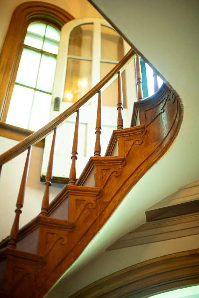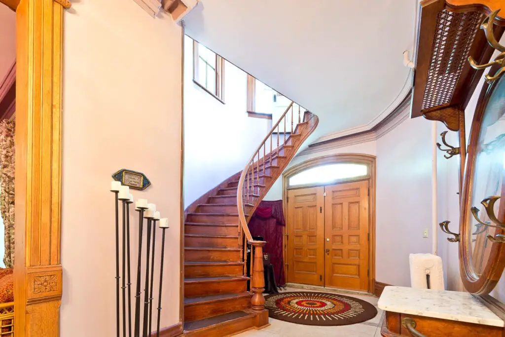 Stepping through the front door, visitors are greeted by a grand foyer—a space that sets the tone for everything that follows. High ceilings soar overhead, lending the entrance an air of drama and dignity. The winding staircase, an exquisite example of early American craftsmanship, rises gracefully to the upper floors, its polished wood gleaming in the soft light filtering through tall windows. The atmosphere is both regal and inviting, as if the house itself is welcoming you to explore its many wonders.